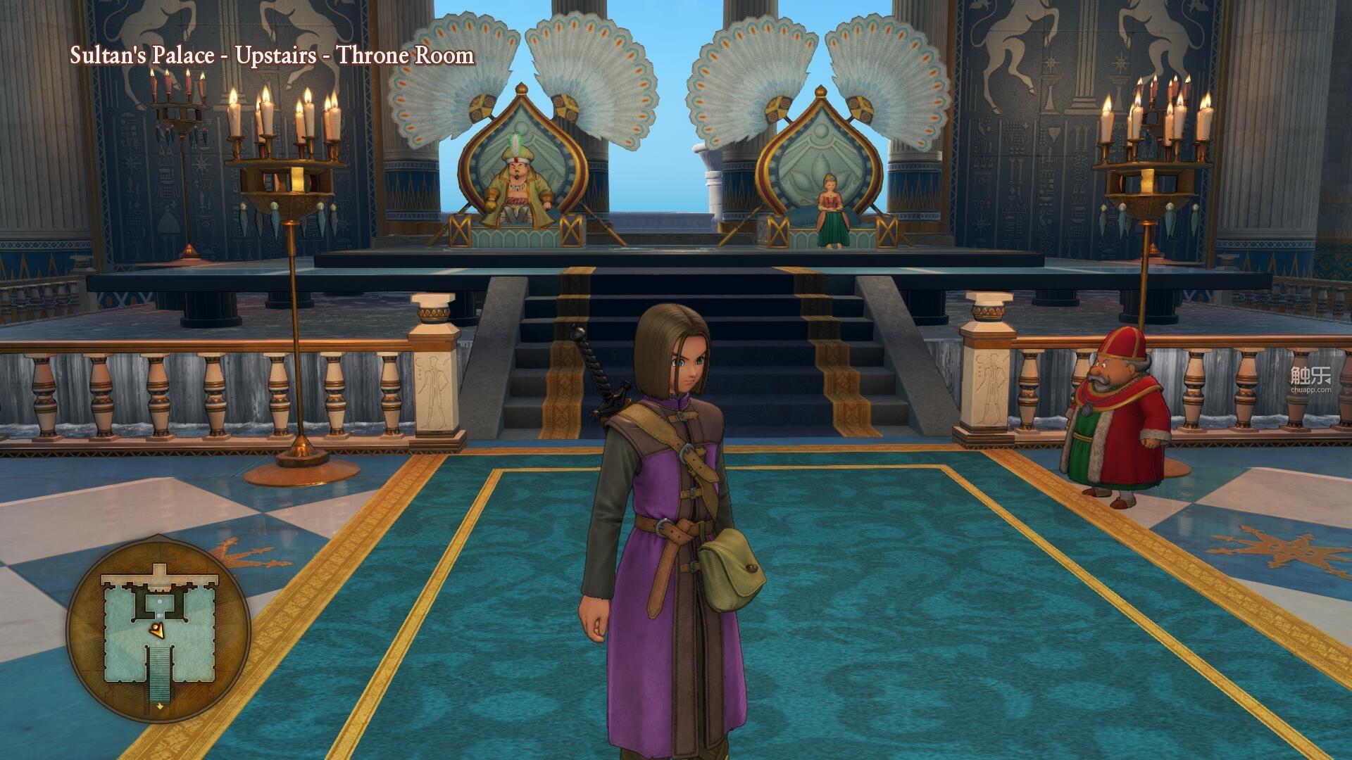 小时候在2D像素画面上看到那种国王、王后、大臣呆在定位上的王座室规划,不觉高耸;如今3D了,看起来就有点好笑