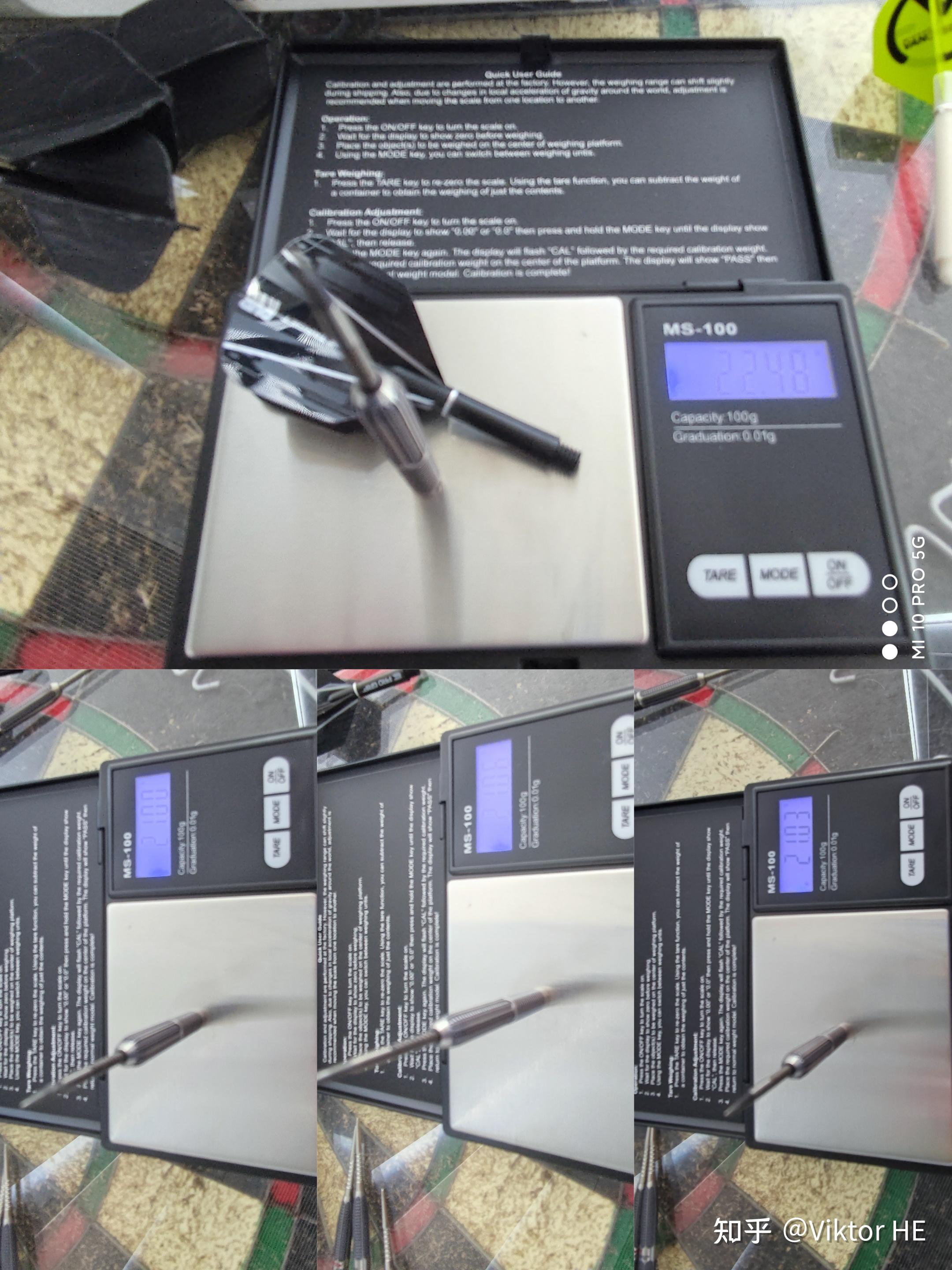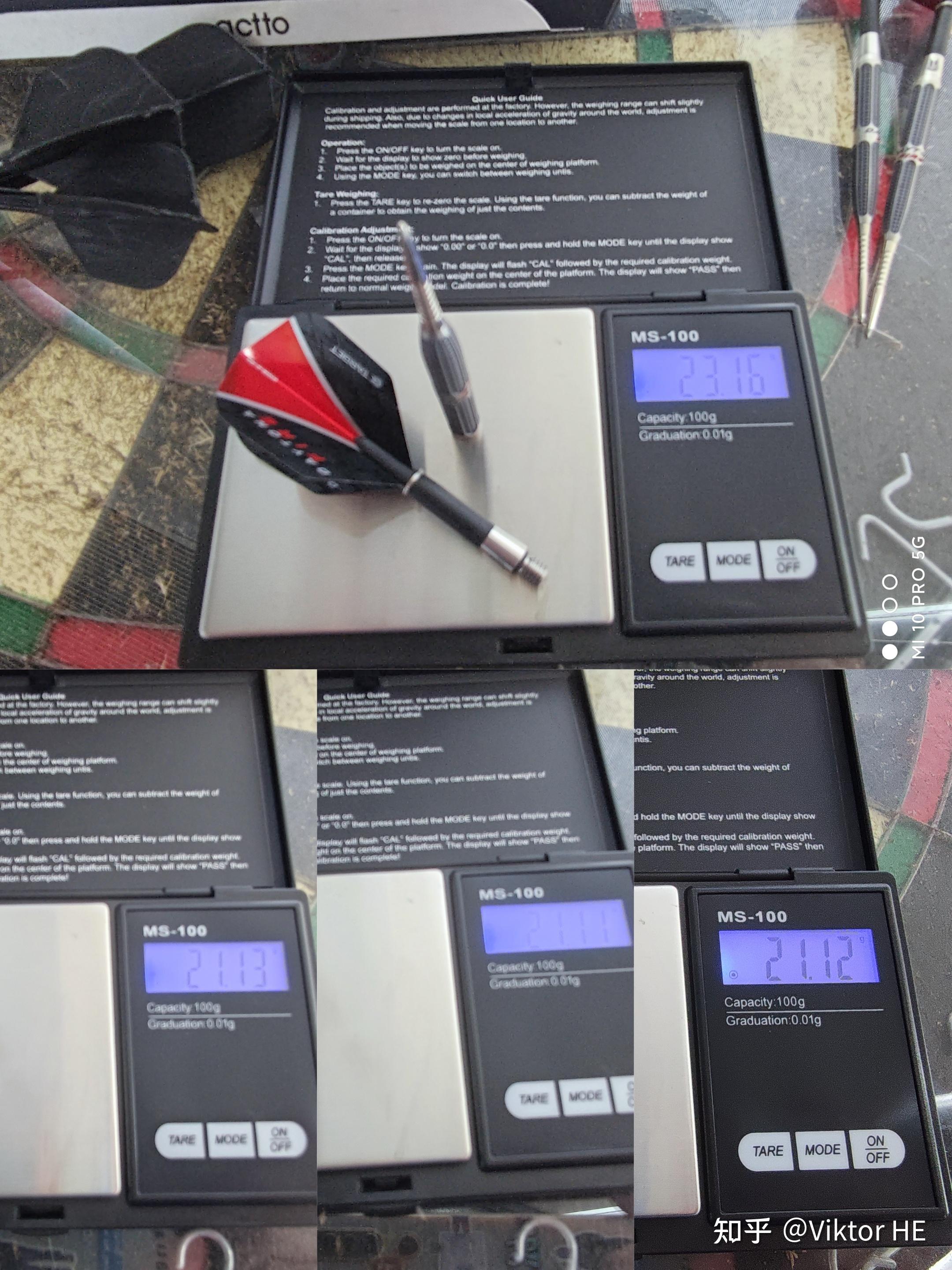 3镖重量:21.33g/21.32g/21.38g第一次在Target的飞镖中买到了误差度超越0.05g的飞镖,本次飞镖非原拆针,且电子秤可能存在误差,但是三收镖在统一情况下称重,且镖针也为Target官方旗舰店购置比没用大量利用的情况下,误差度应该是可信的。即便长短选手款,我觉得品控仍是需要留意的。别的讲到镖针,我不能不说Target原拆两套光针26mm/30mm,量量十分差,十分容易掉靶,根本上3镖掉1镖,或者挂在上面摇摇欲坠。固然Target群里有镖友说本身没有那个情况,但是我的现实利用感触感染就是如斯,在手里其他同等情况下扔掷各类飞镖,都不会呈现那个情况。而且做了屡次测验考试,拔镖时都能感触感染到镖针在靶子里面过于丝滑,飞镖靶也是利用不超越3个月的PDC中国官方指定用靶。