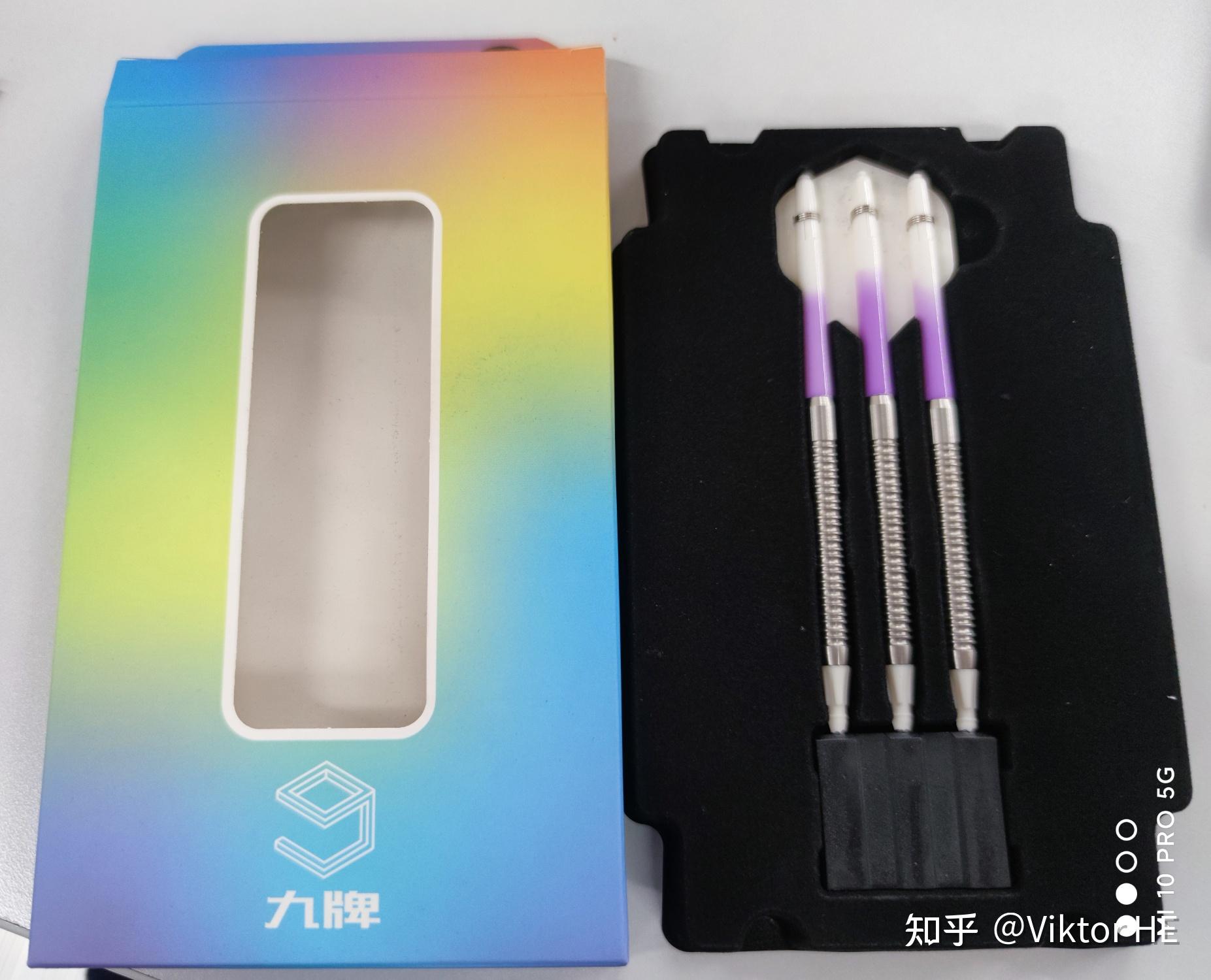 说实话九牌在国内也起头小有名气了,比来还签了宗笑尘,那个包拆盒其实是有点简陋。外包拆就是软软的纸盒。附赠的标杆和镖叶看起来也比力陋~