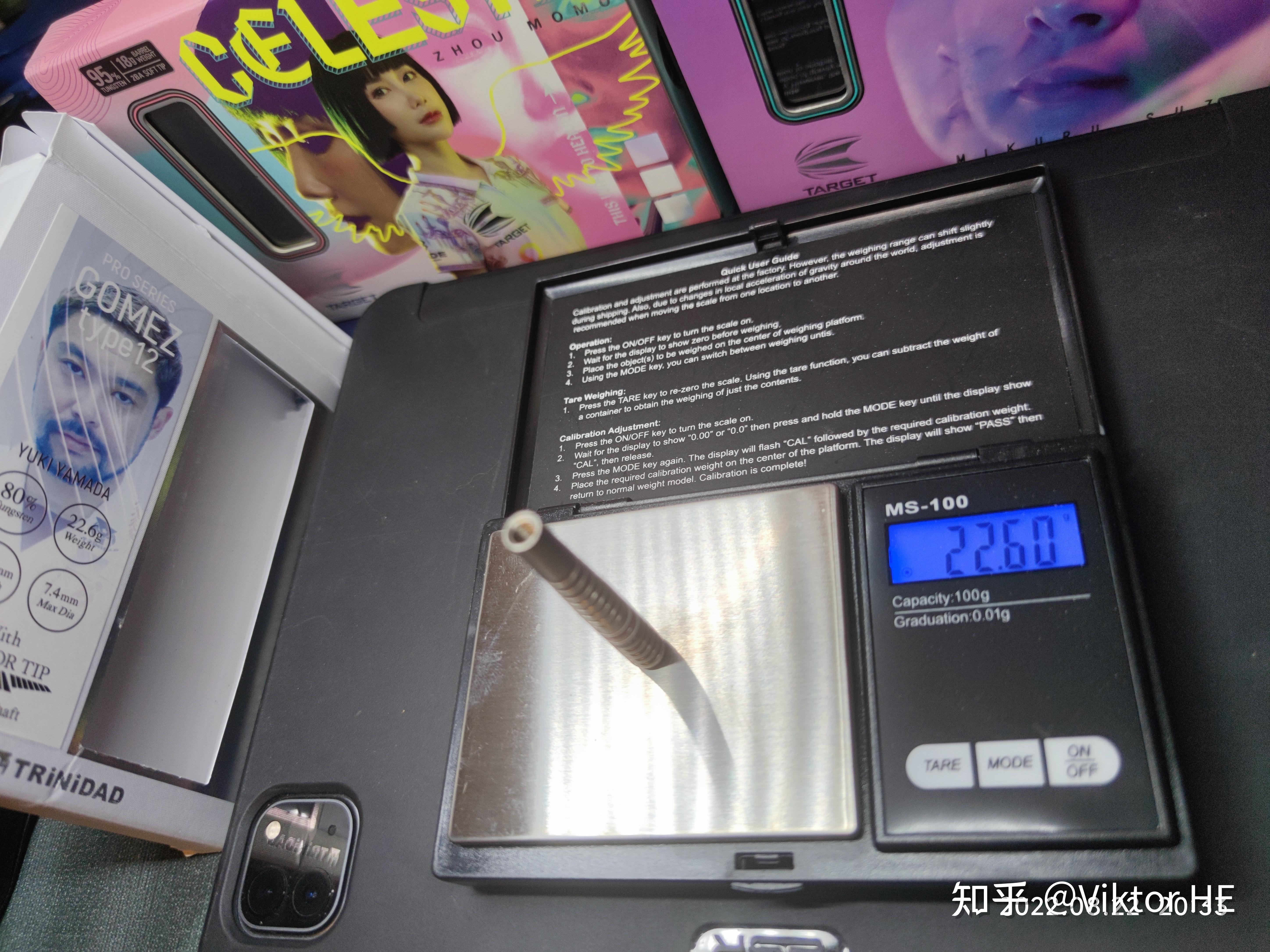 同样是磁吸搭扣,那个在翻开的时候实的很有好感,起首是两个小的宣传册,宣传本系列产物和Target系列产物,黑色的小册子上标重了那套镖的现实重量21.1g,那个标识很有产物司理签样的觉得,在我看来是一种理工科的浪漫。它的标重契合我说的优良品控的第一点要求,既然如许,我就先上实测称重图。
