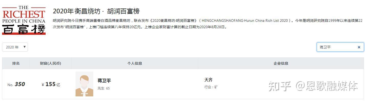 值得一提的是,据最新的《2020衡昌烧坊·胡润百富榜》显示,小编无意中搜刮发现,本籍或出生地及企业所在地在四川遂宁的亿万财主,至少有1人榜上有名,便是四川天齐锂业股份有限公司现实控造人蒋卫平(155亿元,企业所在地四川遂宁)。