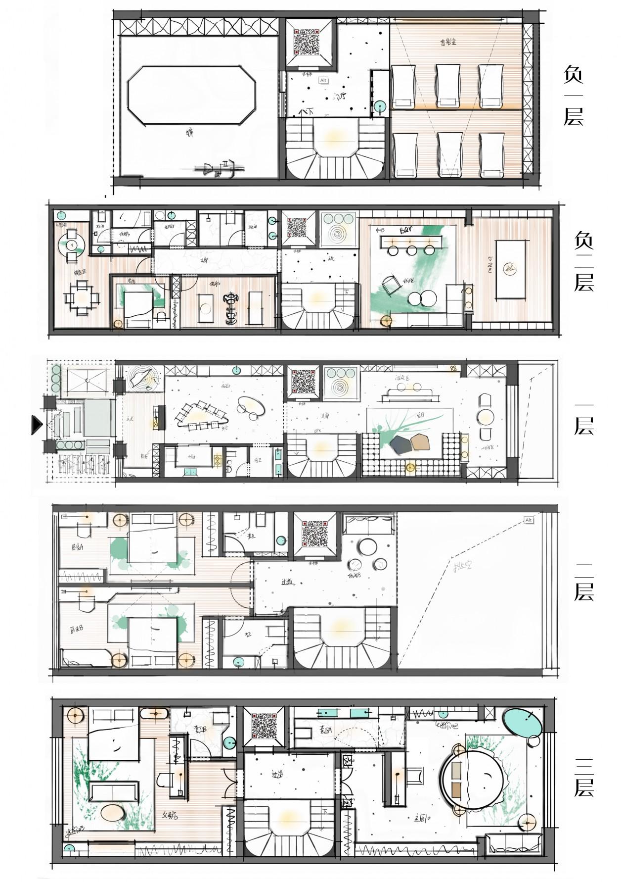 1、保留了每户独门独院的特征,在设想上重视品量和细节,9大功用区与独栋别墅类似。
