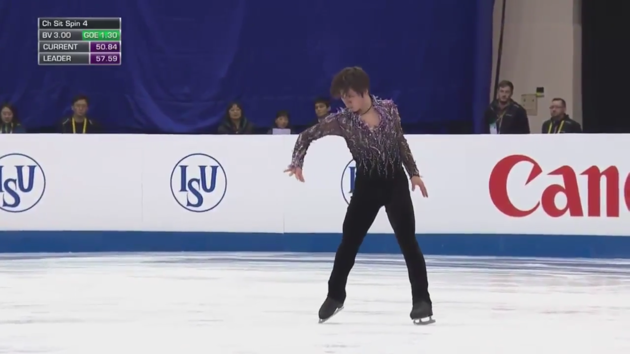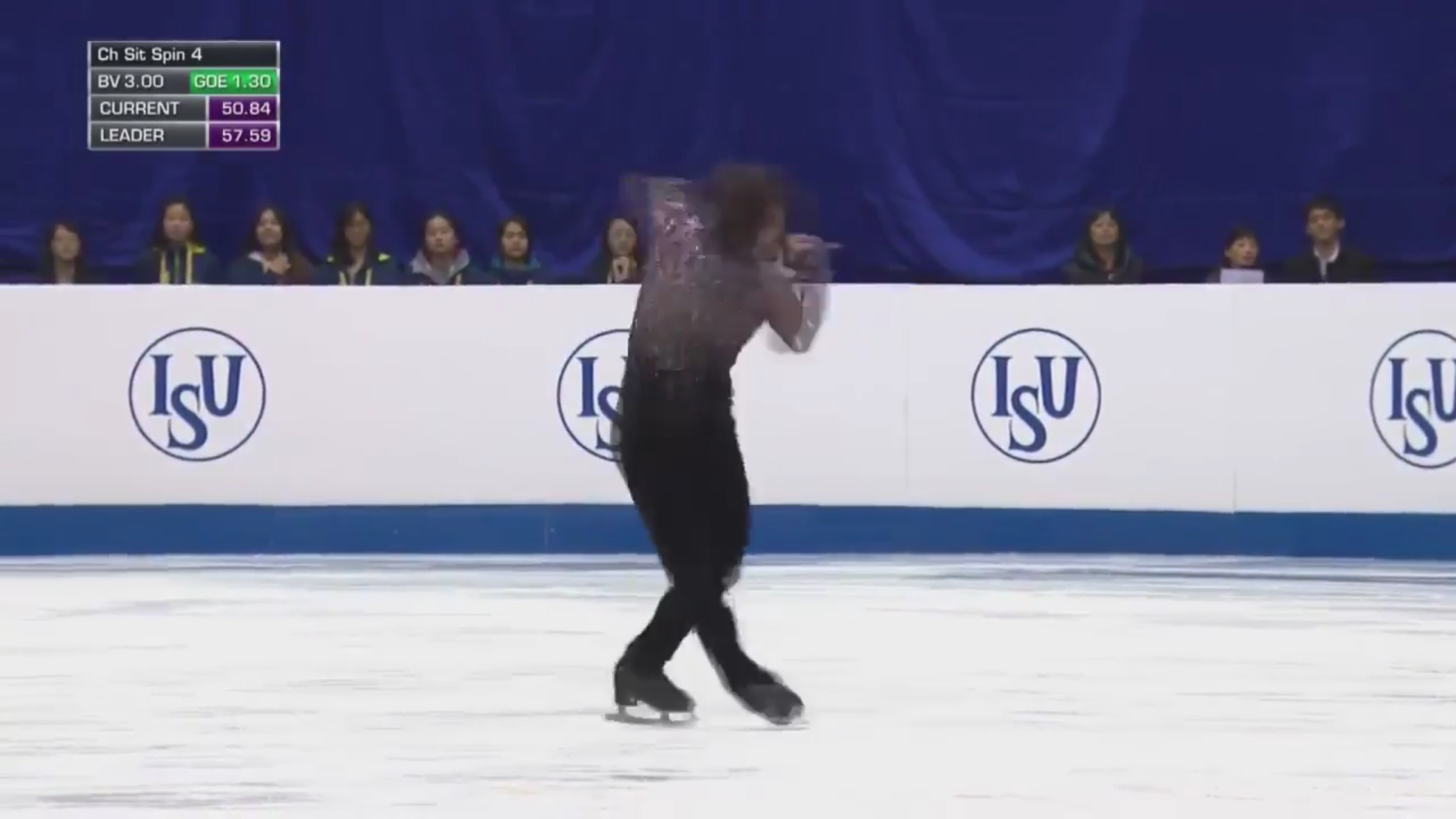 那是宇野本年4cc上的扭转,霎时位移了一个告白牌的间隔,扭转比跳跃远,就问你们怕不怕!(ISU规则规定扭转位移要降级扣分,然而 宇野那个扭转定了四级)