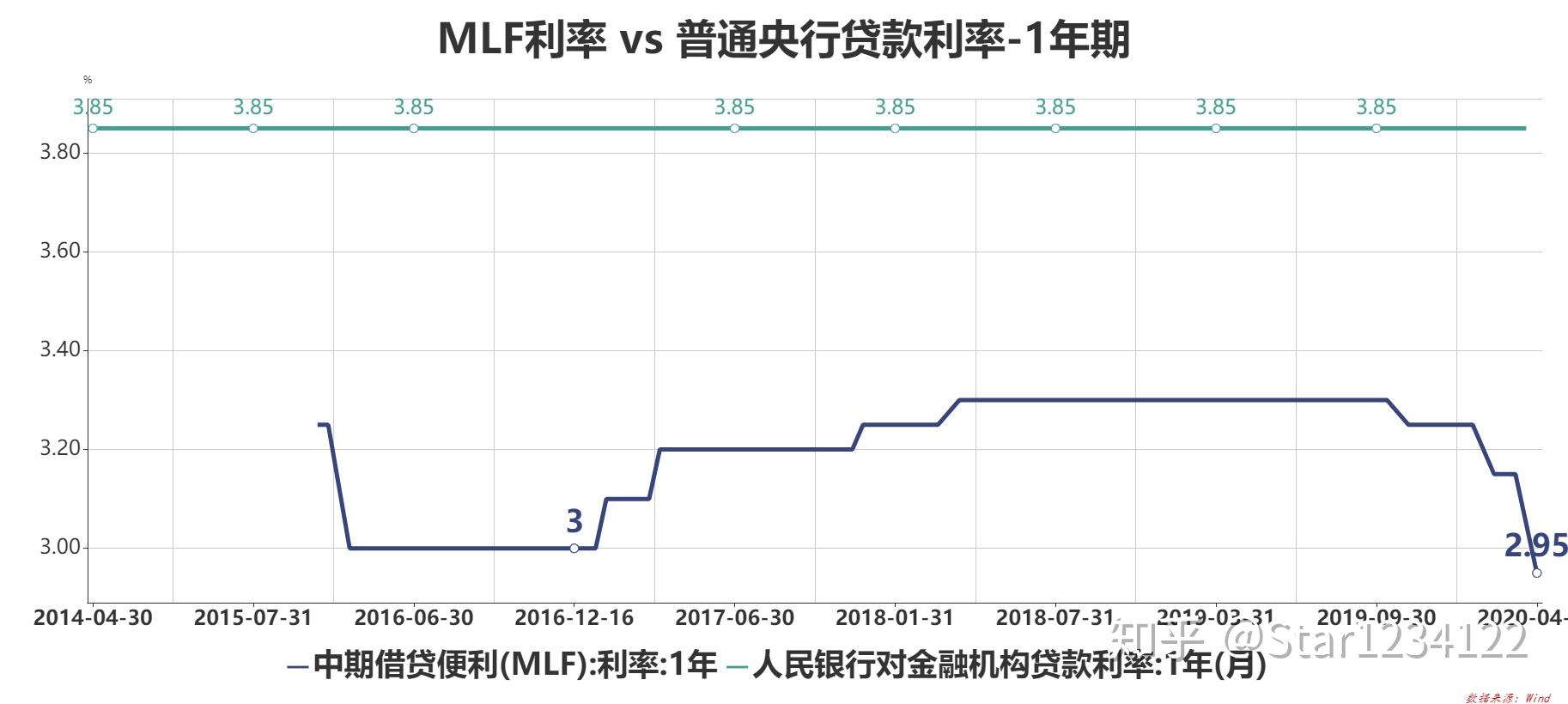 简单来说,MLF 是贸易银行向央行借钱(贷款)的环节,期限为中期3个月、6个月、1年。