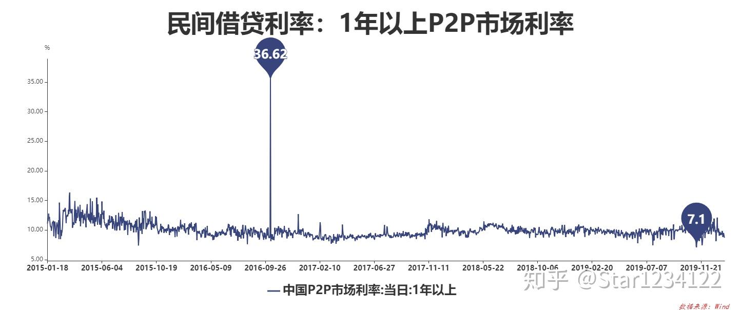 下图是2015年以来民间借贷P2P市场利率,能够看到在2016年P2P利率更高到达36%,2019年利率下降,但仍在7%以上,一年期以上利率均匀维持在10%摆布,比拟于银行,民间借贷成本较高,利钱也较高,一般企业或者小我没有足够的抵押品,无法从银行获得贷款时,会选择民间借贷,同时陪伴着较高的风险。