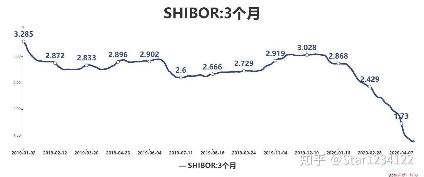 下图是2019至今,我国3个月同业拆借利率SHIBOR(上海银行间同业拆放利率),本年以来SHIBOR利率不断下降,目前3个月SHIBOR报1.39%摆布。