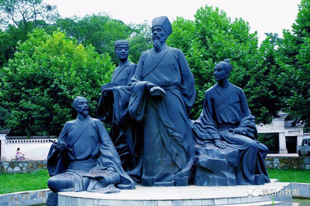▽图为贵阳修文阳明祠,王阳明讲学雕塑