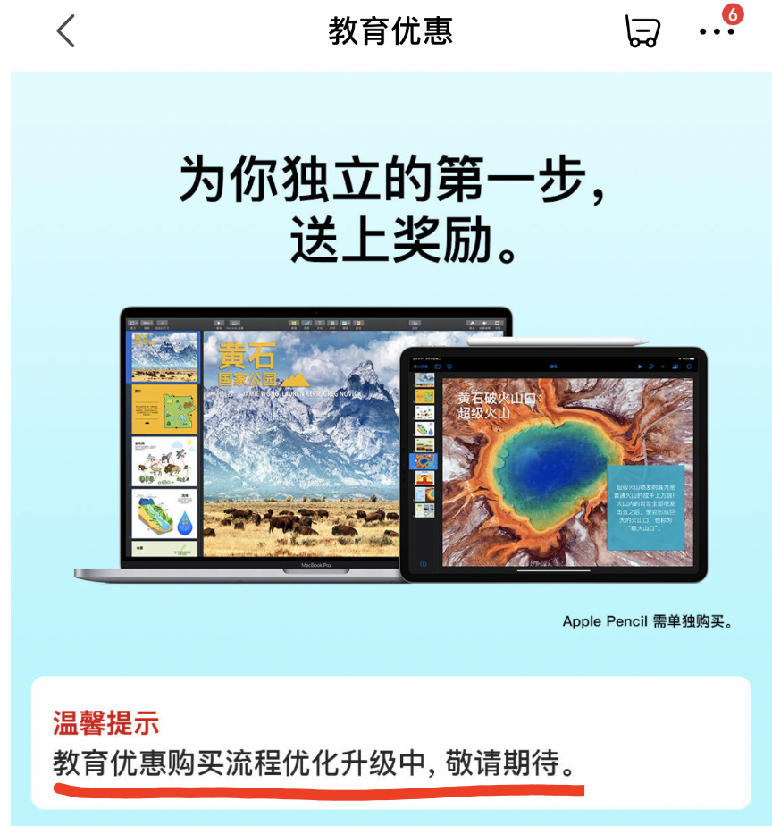 苹果教育优惠入口截图-在iPad首页顶部能够看到教育优惠入口