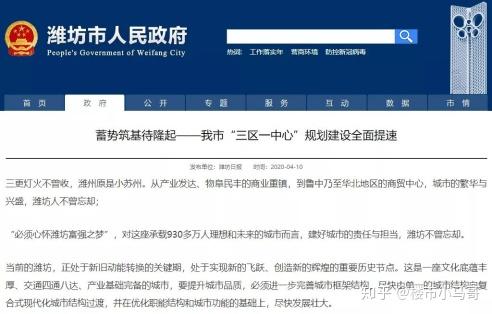 4月初,潍坊日报颁发《蓄势筑基待隆起——我S“三区一中心”规划建立全面提速》,曝光了潍坊将来开展标的目的。