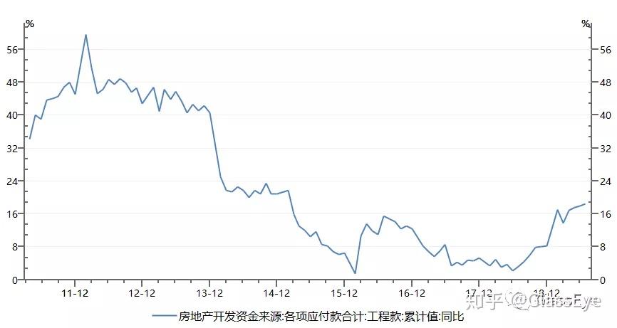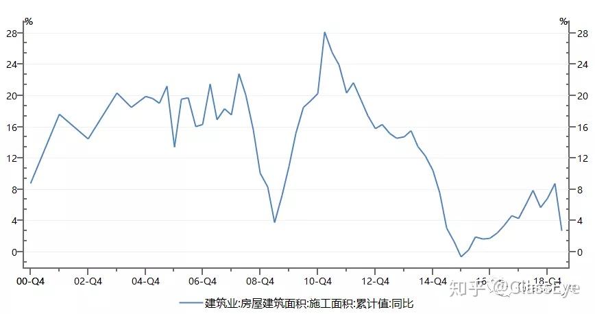 (图:全国施工面积及同比增速不竭下行)