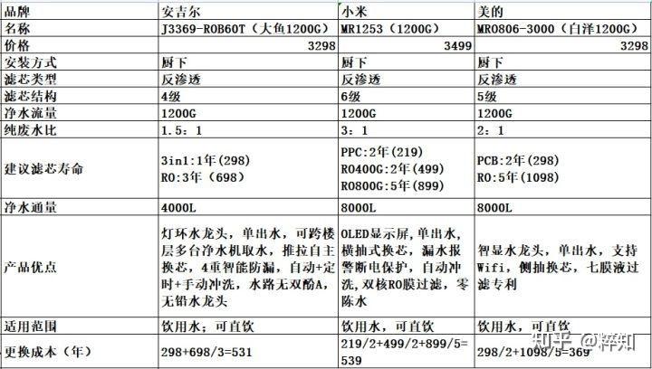重点提一下小米,小米清水器是代工的,售价低,但后期维护费用高。大促活动送滤芯能够考虑一下,其余时间的性价比偏低。