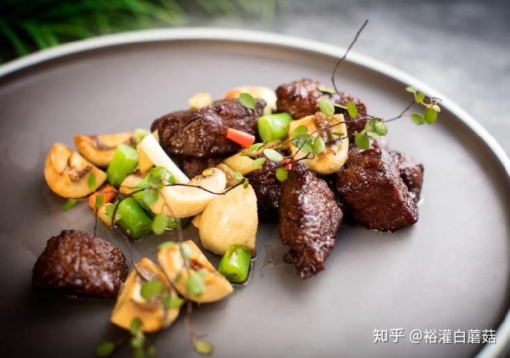 斋烧口蘑腰花19、籽香鲜蘑牛柳粒