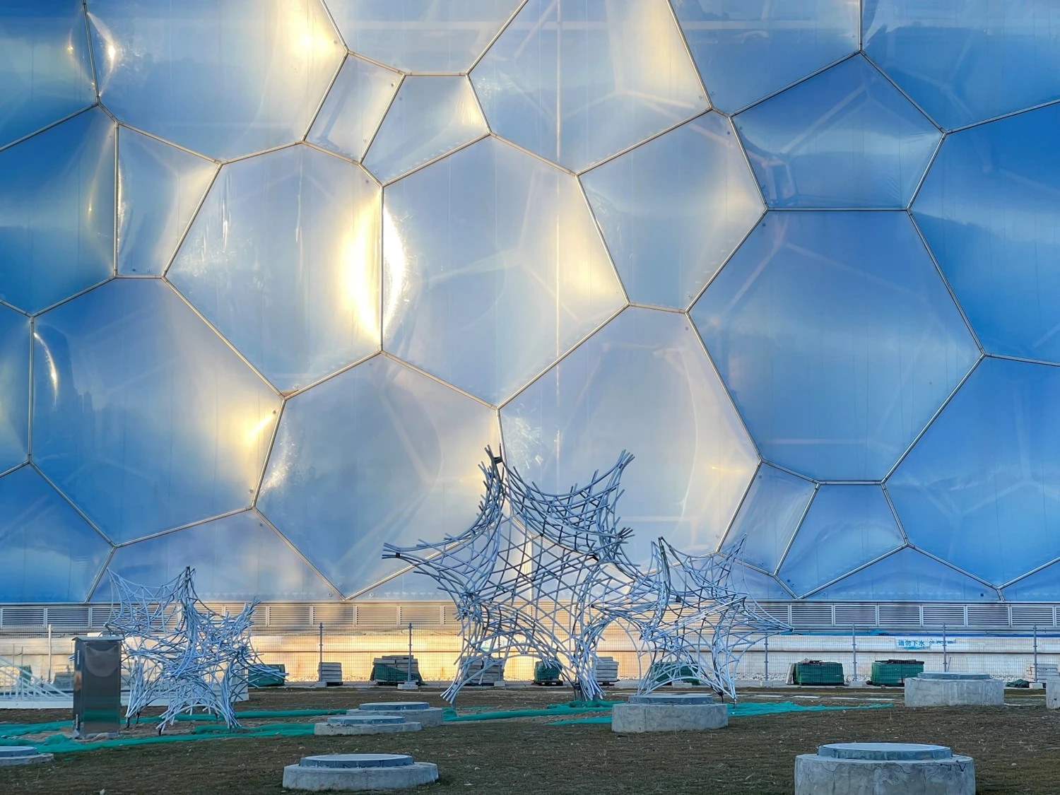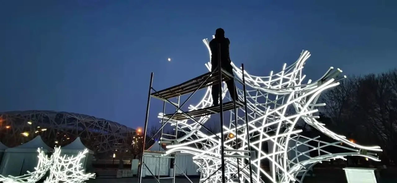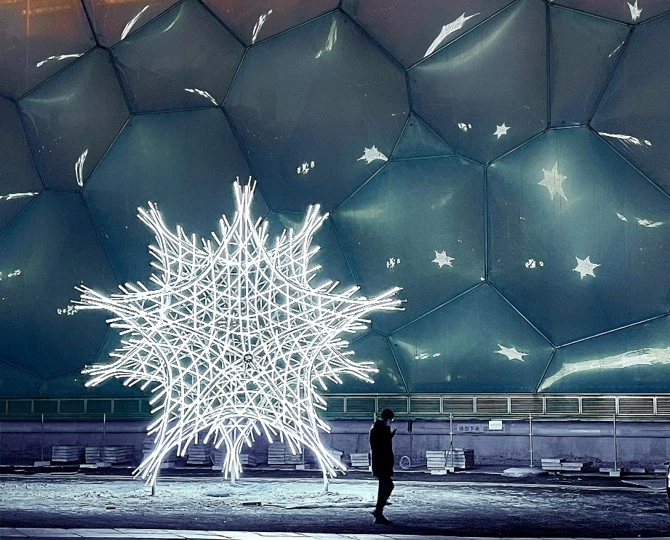 北京2022年冬奥会和冬残奥会期间,八片晶莹闪烁的立体“雪花”在国度泅水中心“冰立方”南广场点亮。那是由清华大学建筑学院副传授黄蔚欣团队原创研发的“编织式空间网壳”灯光艺术粉饰。它们既像雪花,又像闪灼的星星,因而有一个心爱的昵称——“雪绒星”。