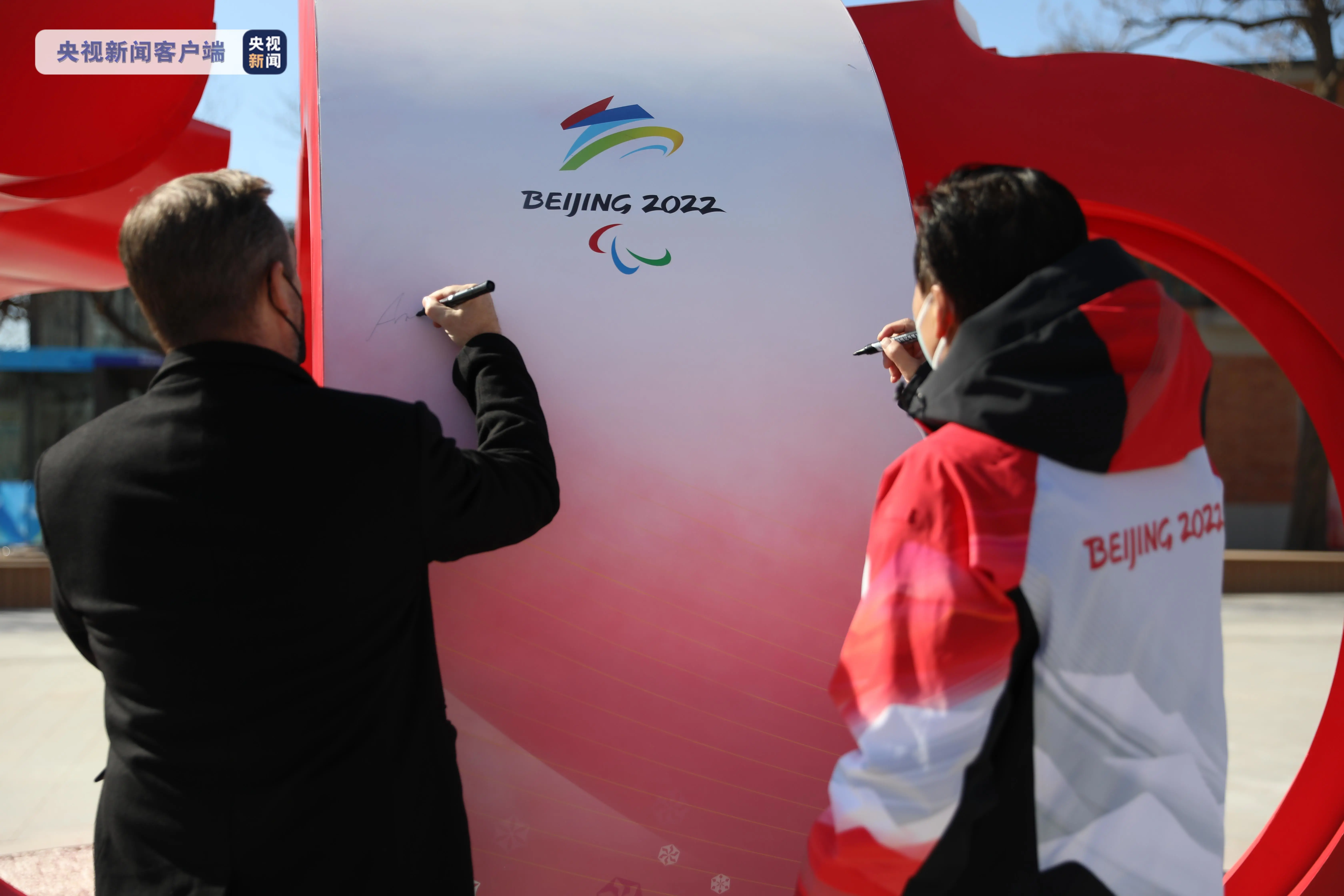 来源:北京冬奥组委官网赛时,将组织冬残奥村内运发动和随队官员在残奥壁画金属板外表签名。
