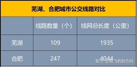 合肥的城市规模更大响应地城市公交线路的数量也更多公交线路及线网总长度均比芜湖多1倍有余