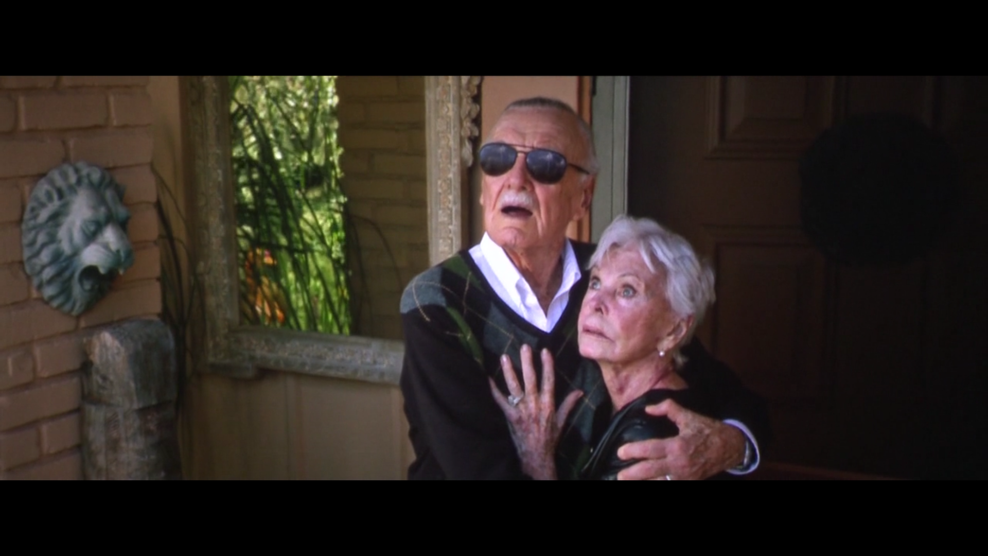 三十五、漫威影片中无处不在的斯坦·李(Stan Lee)老爷子又来客串了,只是那一次他不再是孤身一人,而是带上了本身实正的夫人琼·李(Joan Lee)一路客串。在影片中,他们二人面临漫天核弹升空,虽目瞪口呆却彼此依偎,显然恩爱不凡。