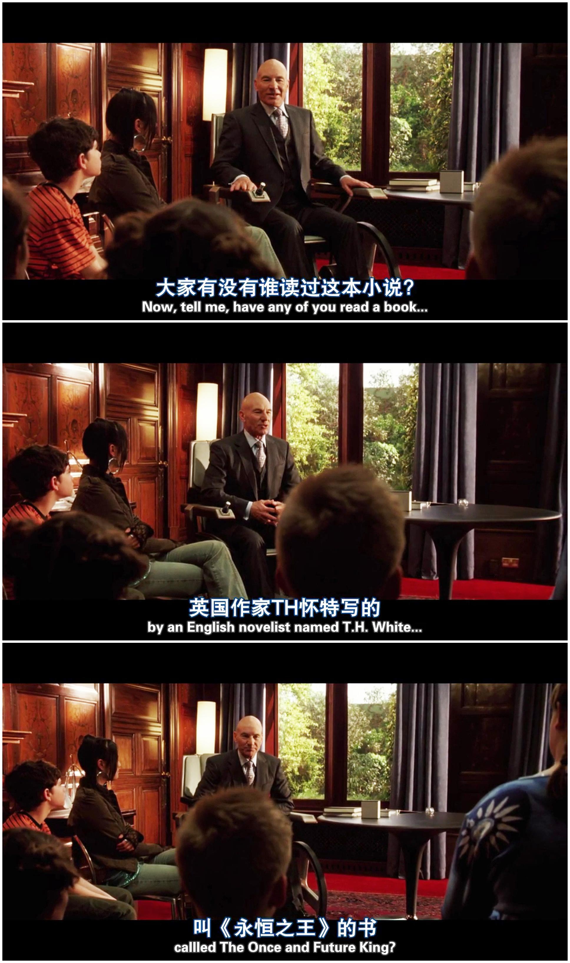 二十七、影片中,X传授与冲击波和镭射眼会面时,正在为学生们解读《永久之王》(The Once and Future King)那本书。而在《X战警2》中,被囚禁在塑胶监狱里的万磁王也曾看过那本书,影片的结尾X传授在讲课时还向同窗们保举了它。那本《永久之王》,是是英国做家T.H.怀特所著的奇异典范,它讲述了亚瑟王的传奇,全书共分为四个部《石中剑》、《空暗女王》、《残破骑士》、《风中之烛》。在漫画里,那是X传授的更爱,他经常把本身喻为书中的法师梅林,引导亚瑟王,启发别人,执导别人,因为X传授觉得本身更像是英雄们的导师,而并不是英雄。
