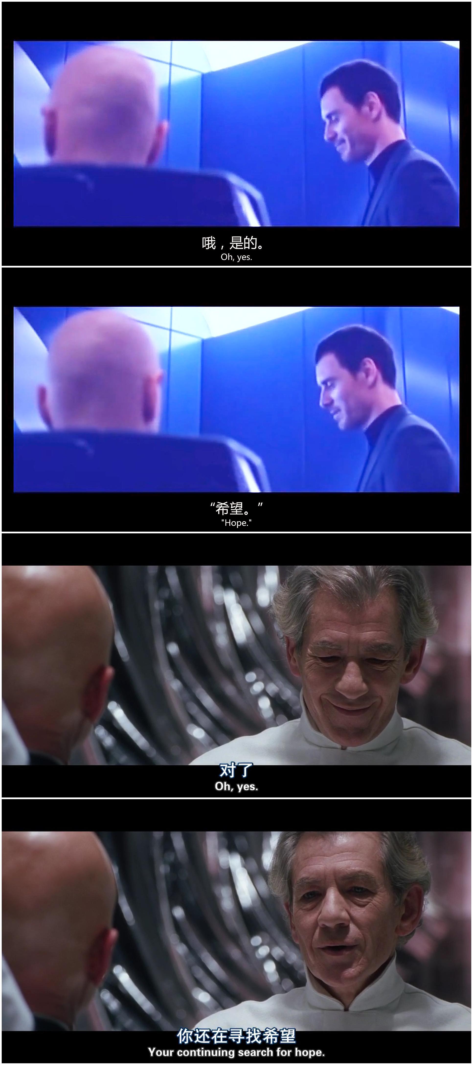 二十三、而关于“希望”和“老伴侣”的对话,同样是在致敬《X战警1》中的典范桥段。