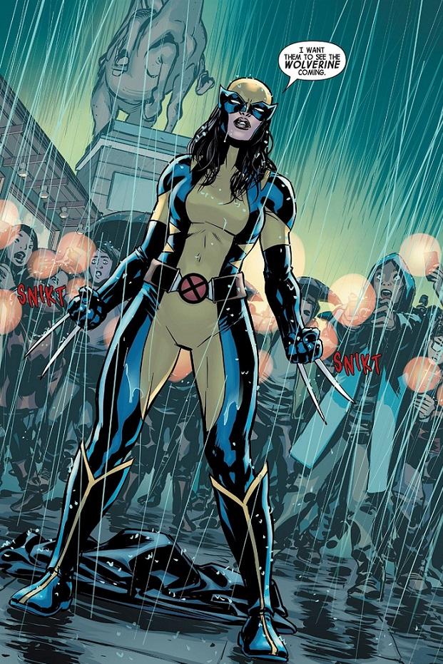 在2015年漫威大事务《金刚狼之死》中,金刚狼因为被液体合金包裹,不得动弹,因而窒息而死。之后,X-23继承金刚狼衣冠,成为新的金刚狼,并将金刚狼的事业继续传承下去。