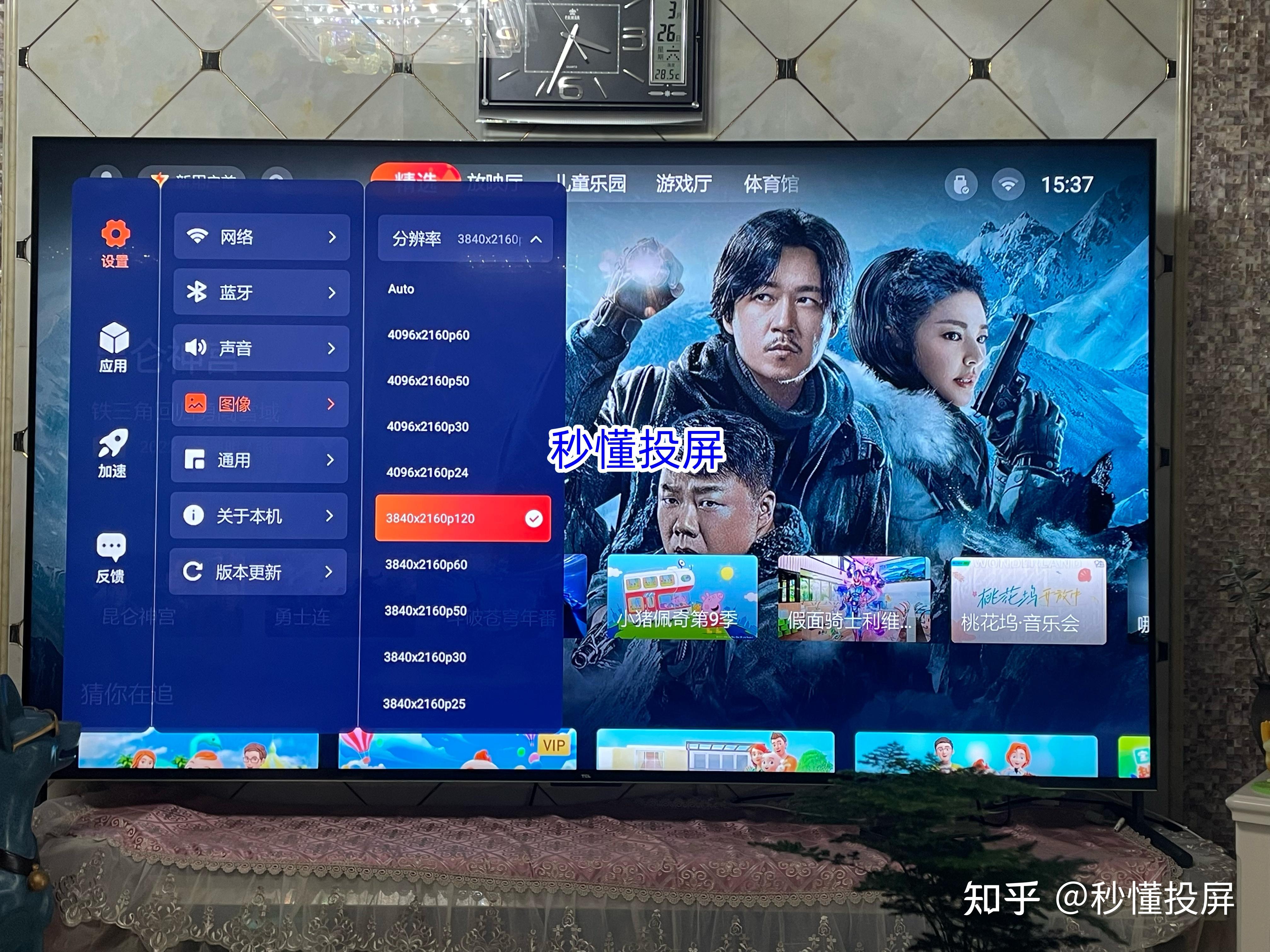 外接TCL 98寸电视 4K 120帧按照电视返回的可设置装备摆设项,机顶盒处设置分辩率。别的能够选择更高规则的4K分辩率。