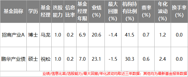 招商财产A(217022):马龙经济学博士,12年+的行业经历,持久耕作于债基范畴,旗下招商财产债,持久业绩每年不变跑赢中证综合债,且战胜债基均匀程度,就是费率略高一丢丢,规模近80亿,也偏大一些。