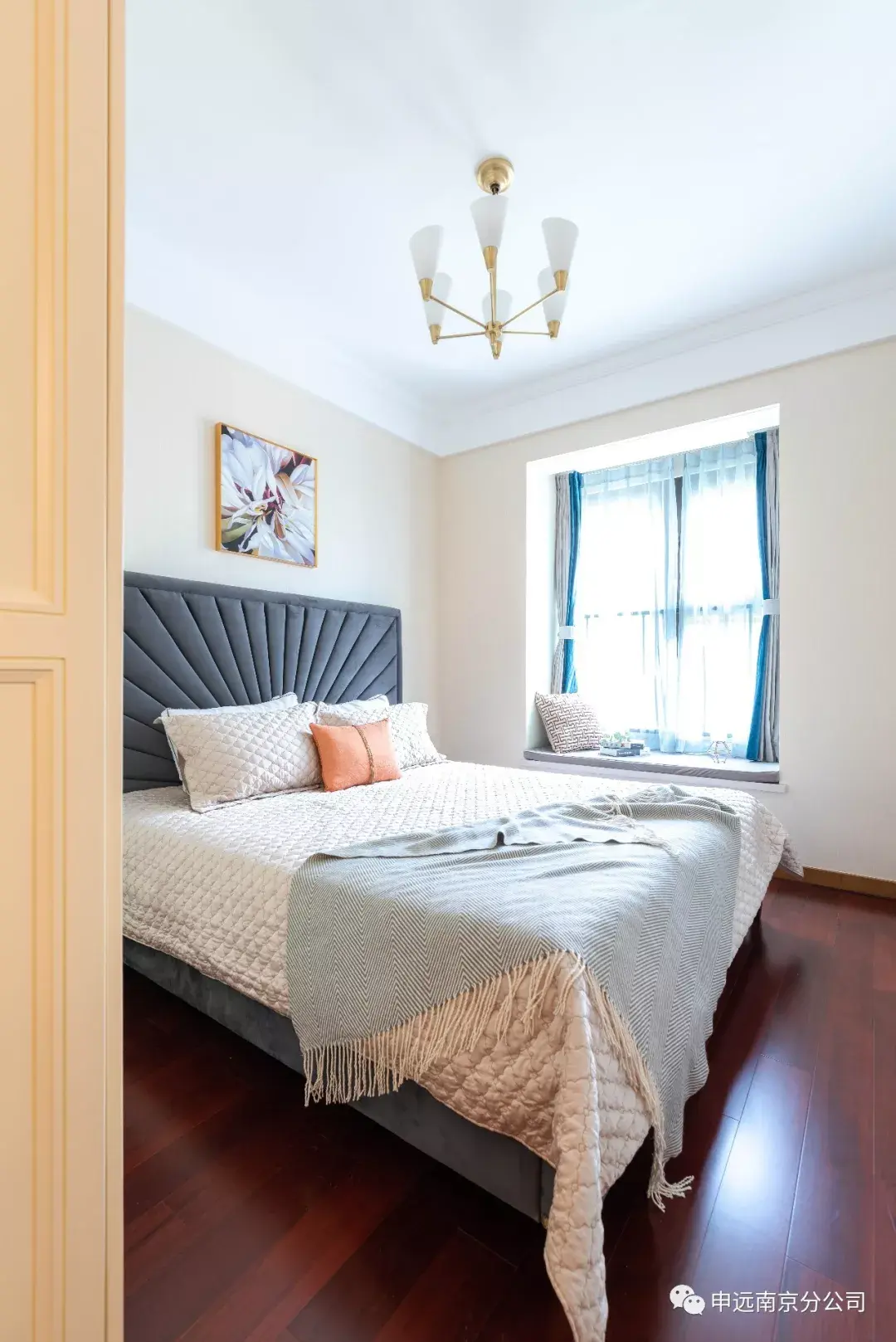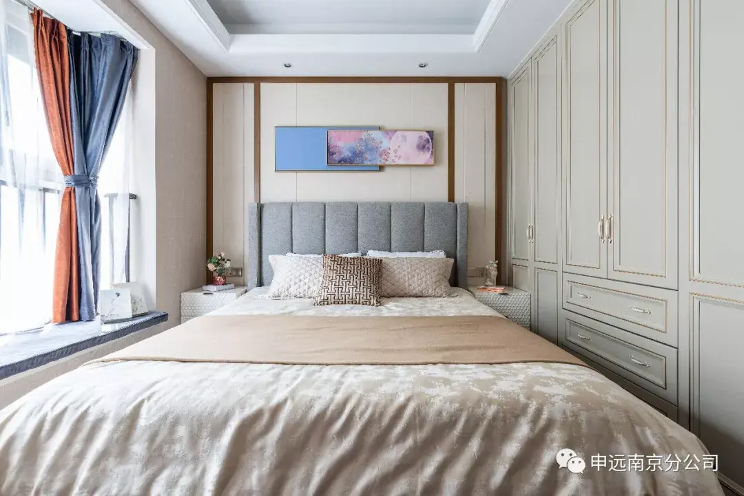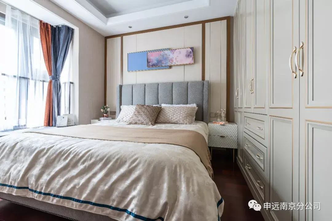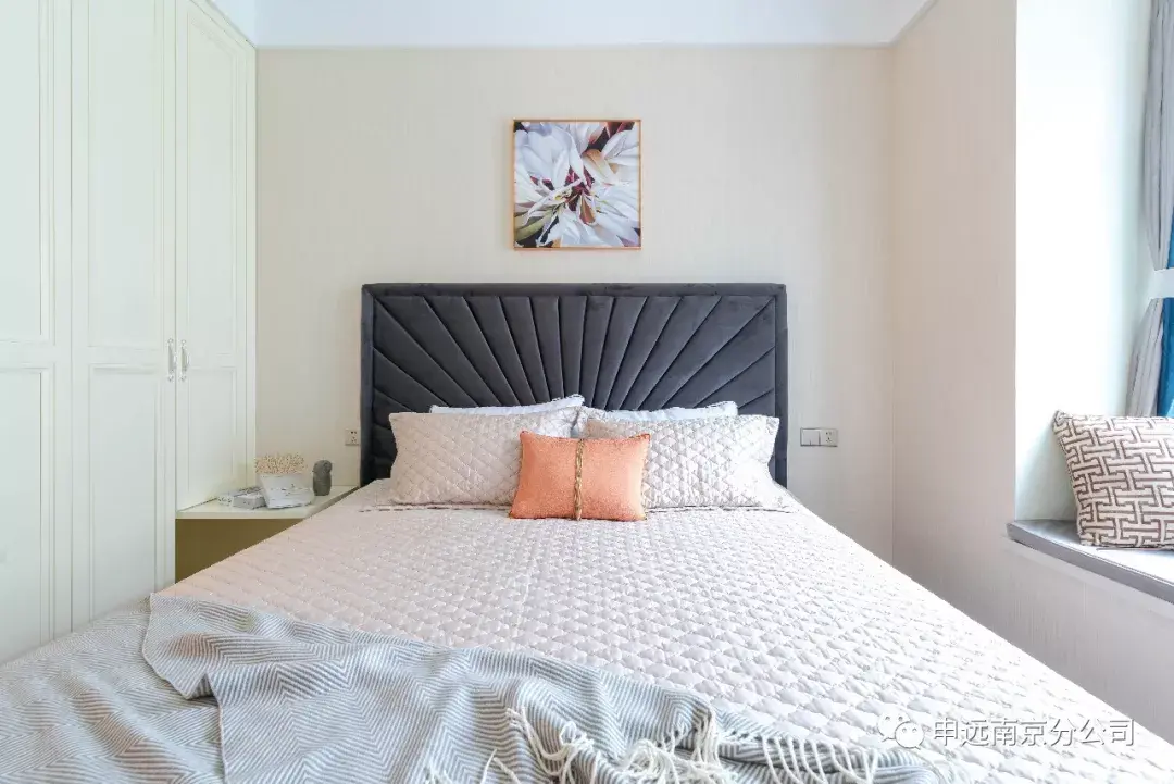 墙面的百合花挂画设想,恰如其分的装点,为生活呈现美妙。衣柜照旧采纳无死角顶天登时设想,不单增加储物功用,还便于日后清洁。