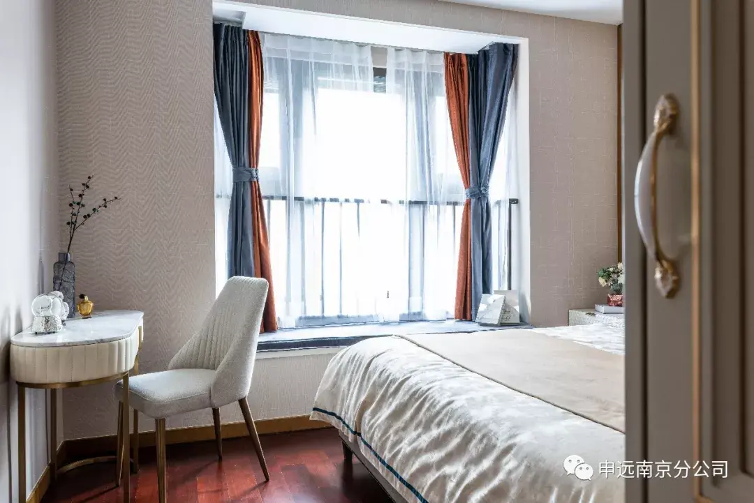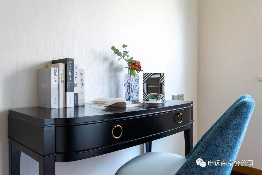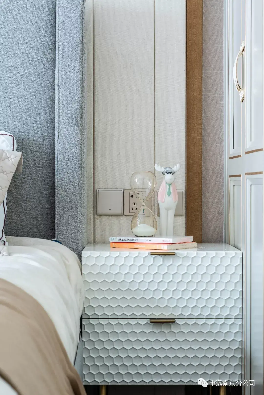 墙面的百合花挂画设想,恰如其分的装点,为生活呈现美妙。衣柜照旧采纳无死角顶天登时设想,不单增加储物功用,还便于日后清洁。