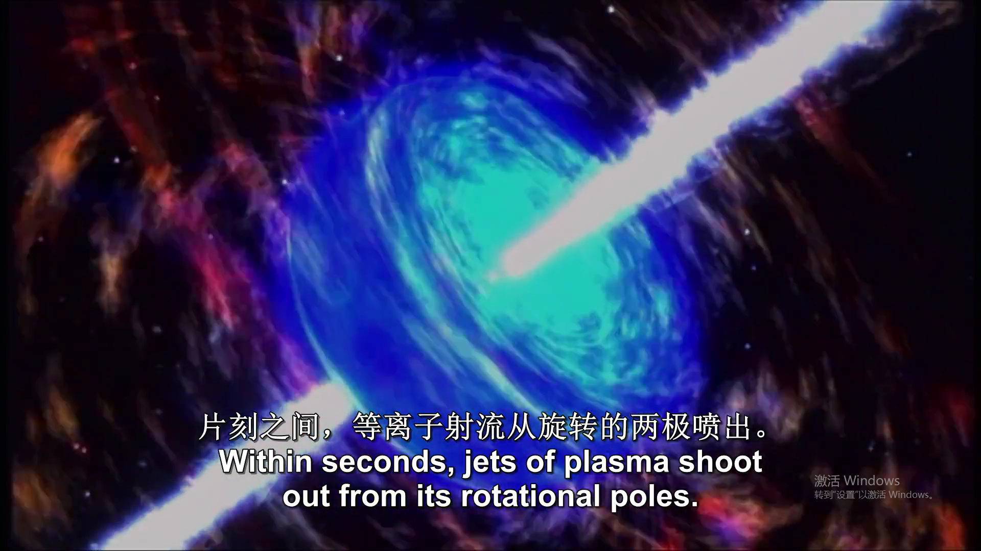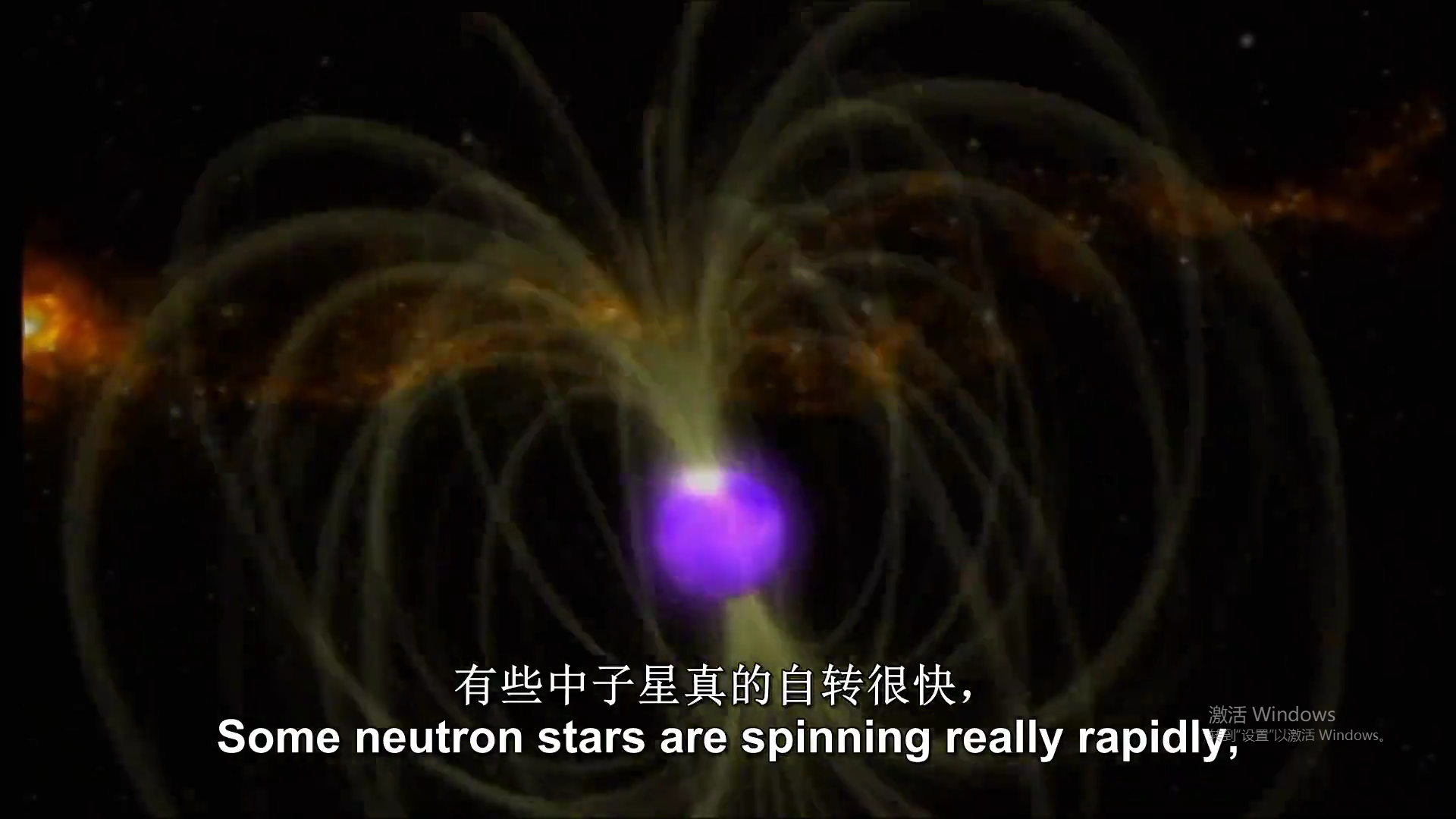 某些中子星自转速度极快,到达每秒几百圈,磁场能量难以置信的高,带动磁场使得一束带电粒子加速放电