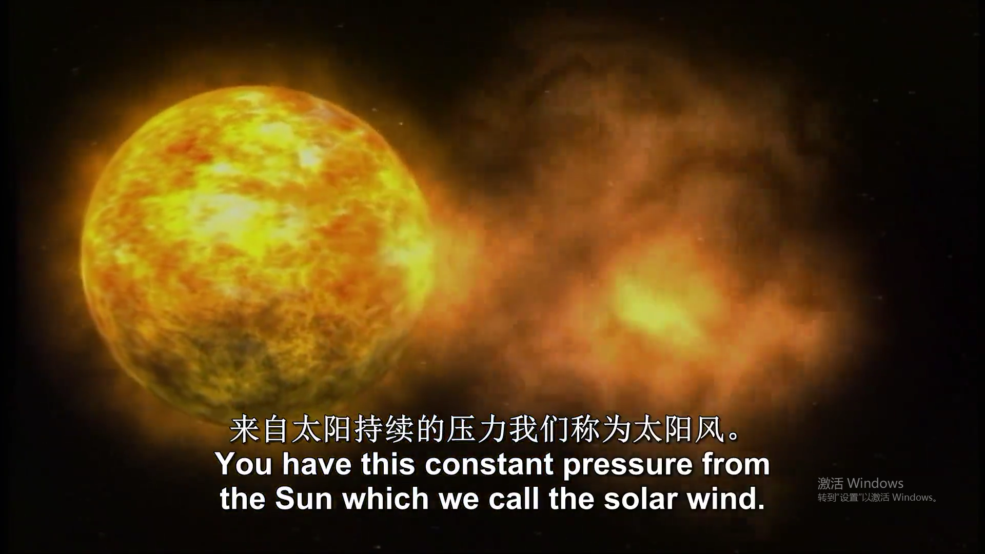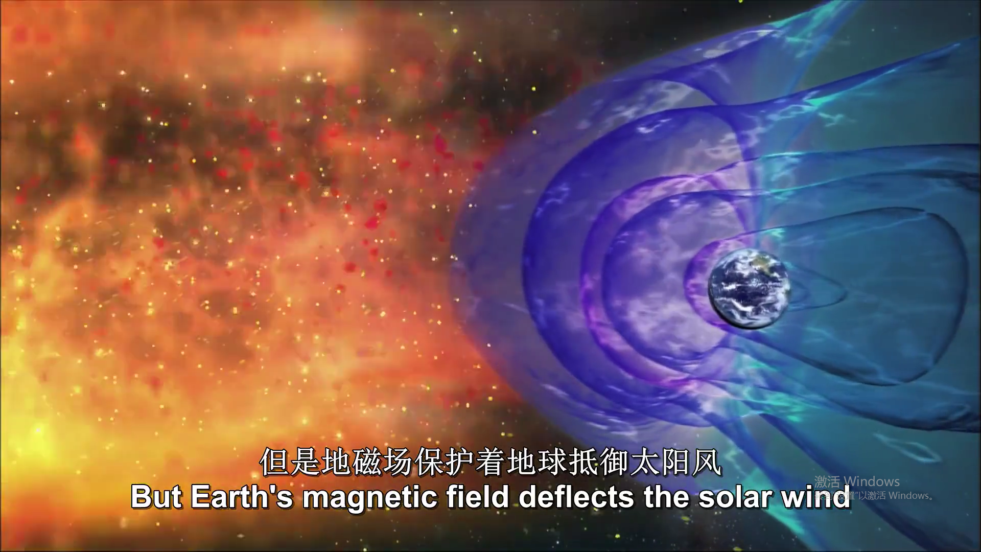 太阳风中的带电粒子会将大气层电离,俗称大气层被太阳风吹走