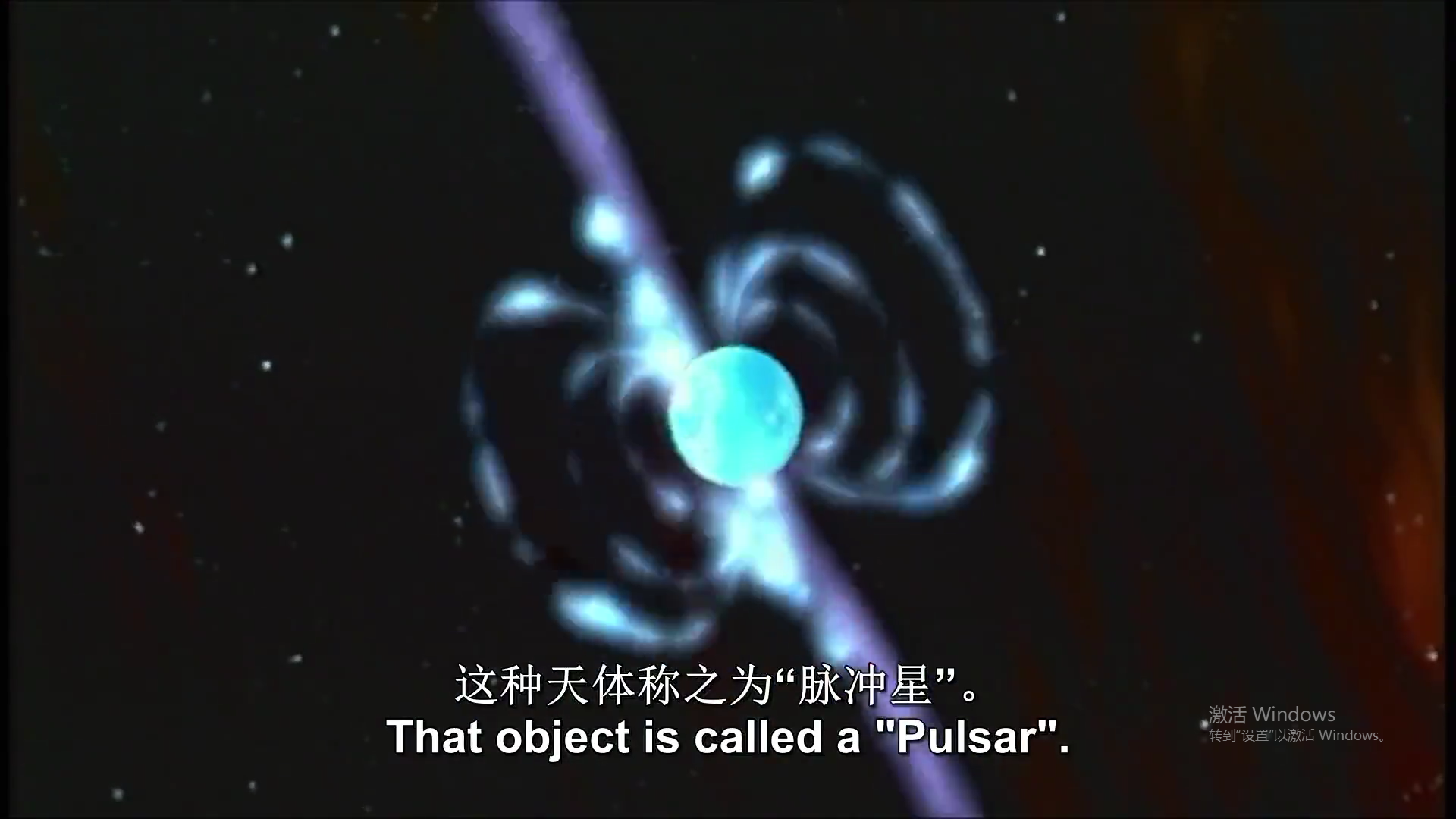 随高速自转的中子星加速的电子束放电,构成极为致密的亮光,但是只要转到我们的视野角度时才会被我们看见——脉冲星