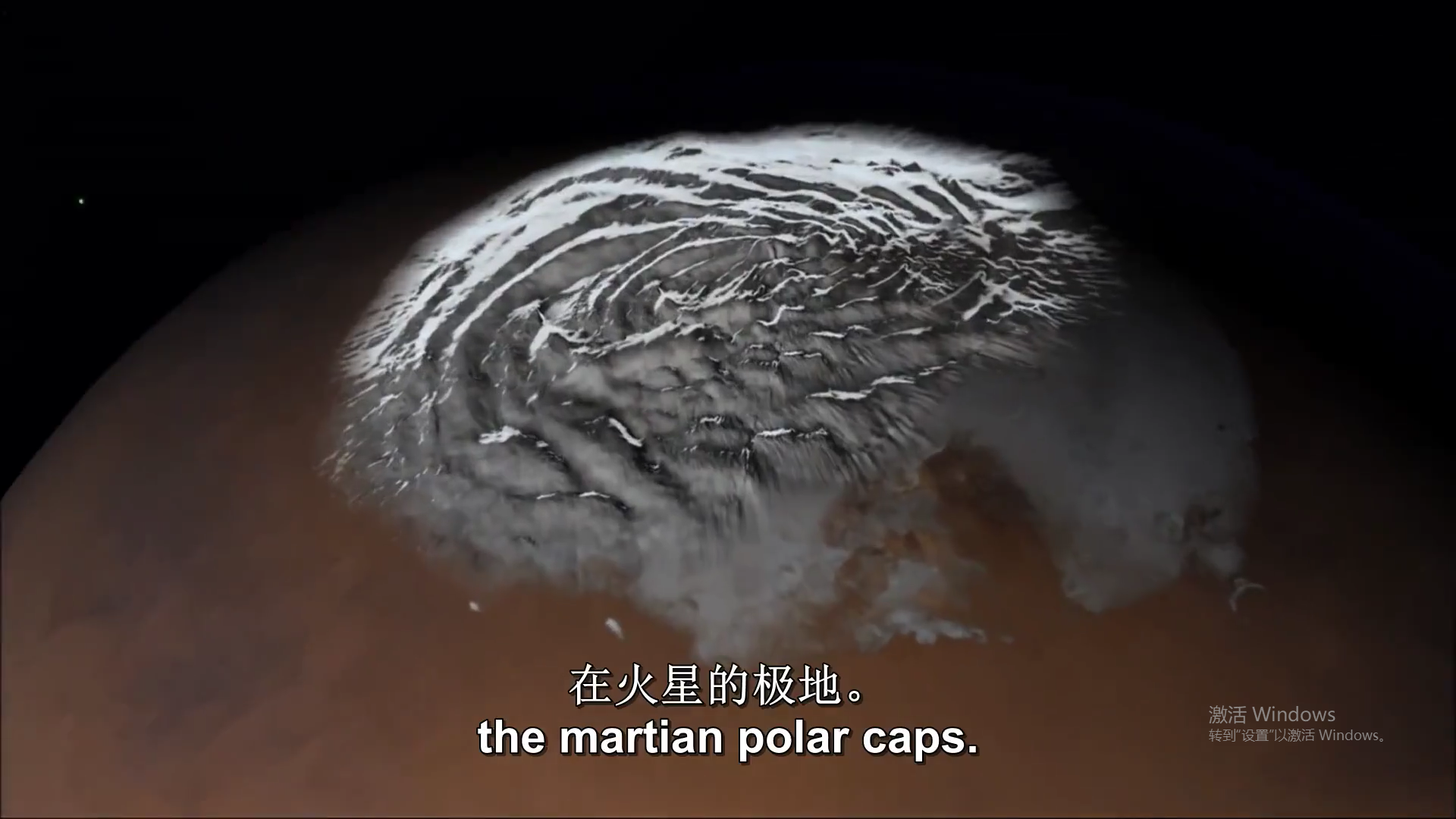 极地冰帽是火星的一大特征,那不是水的结晶,而是固态二氧化碳(干冰),以及二氧化碳雪