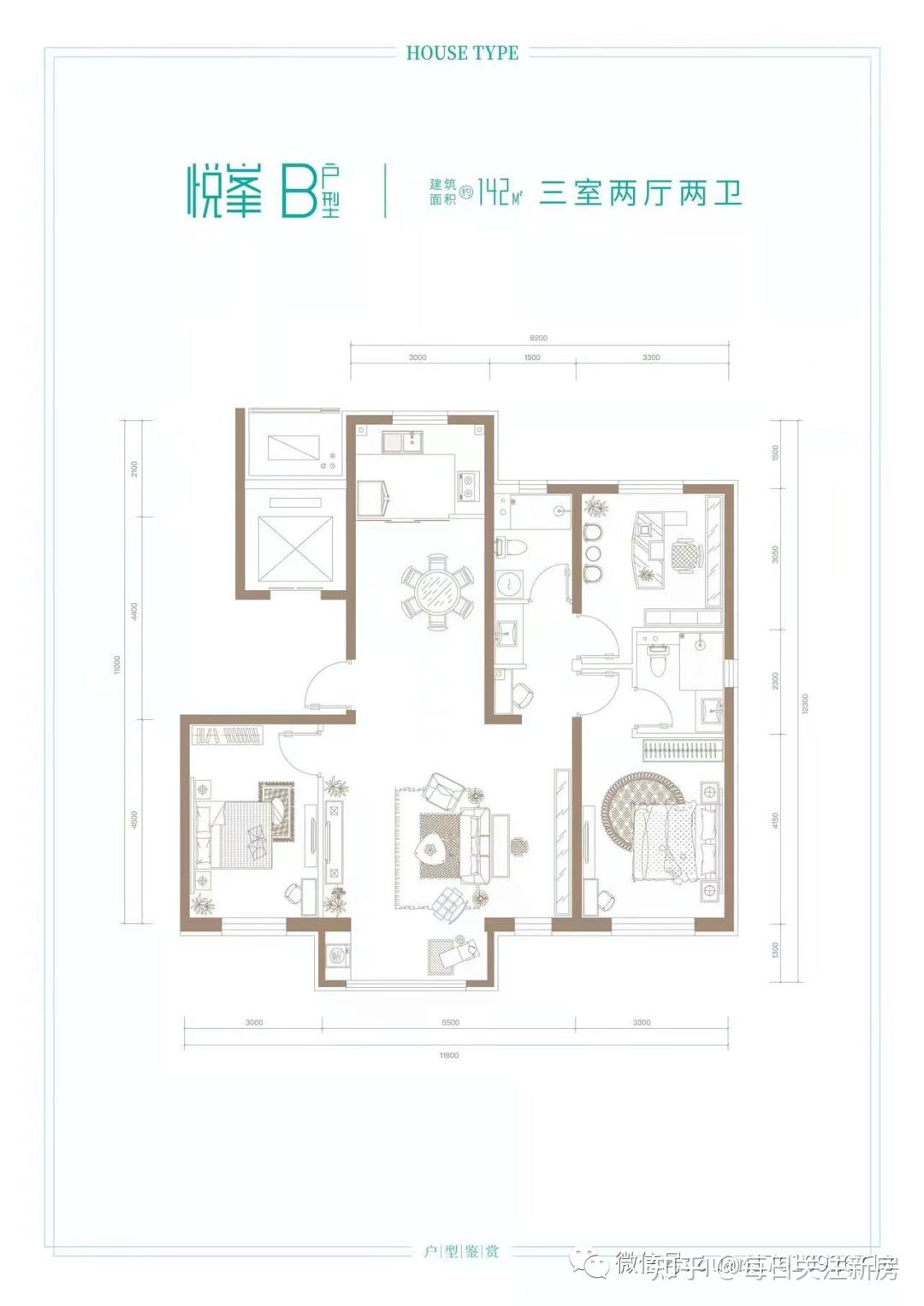 面积142 ㎡ :3居2厅2卫