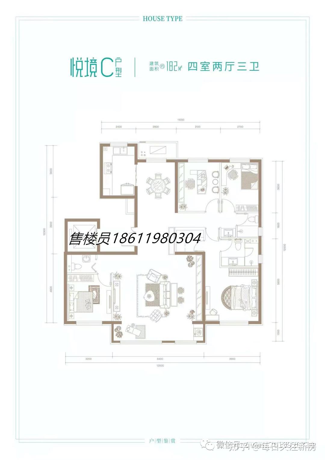 182㎡(四居)1350万以内
