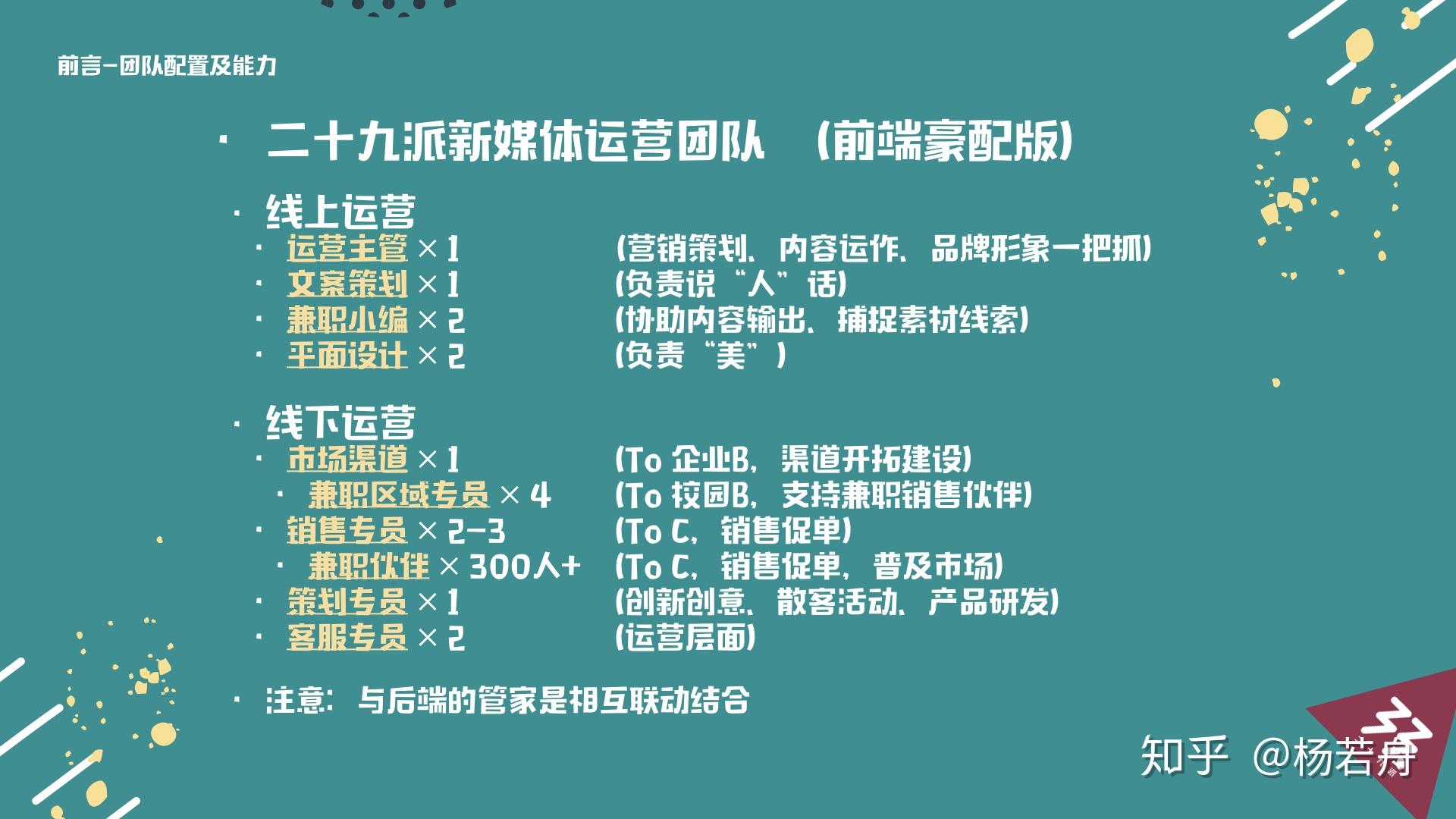 除了市场和销售主管,若是各人的团队有前提或者有需求的话,还能够装备一位筹谋专员。我适才也阐发到了,将来趋向也是靠轰趴的内容不竭晋级,所以筹谋师很重要,当然也很难找,他次要的工做是做轰趴产物的内容和创意上面的提拔,包罗产物的研发等等。