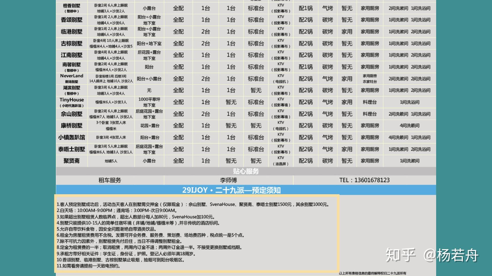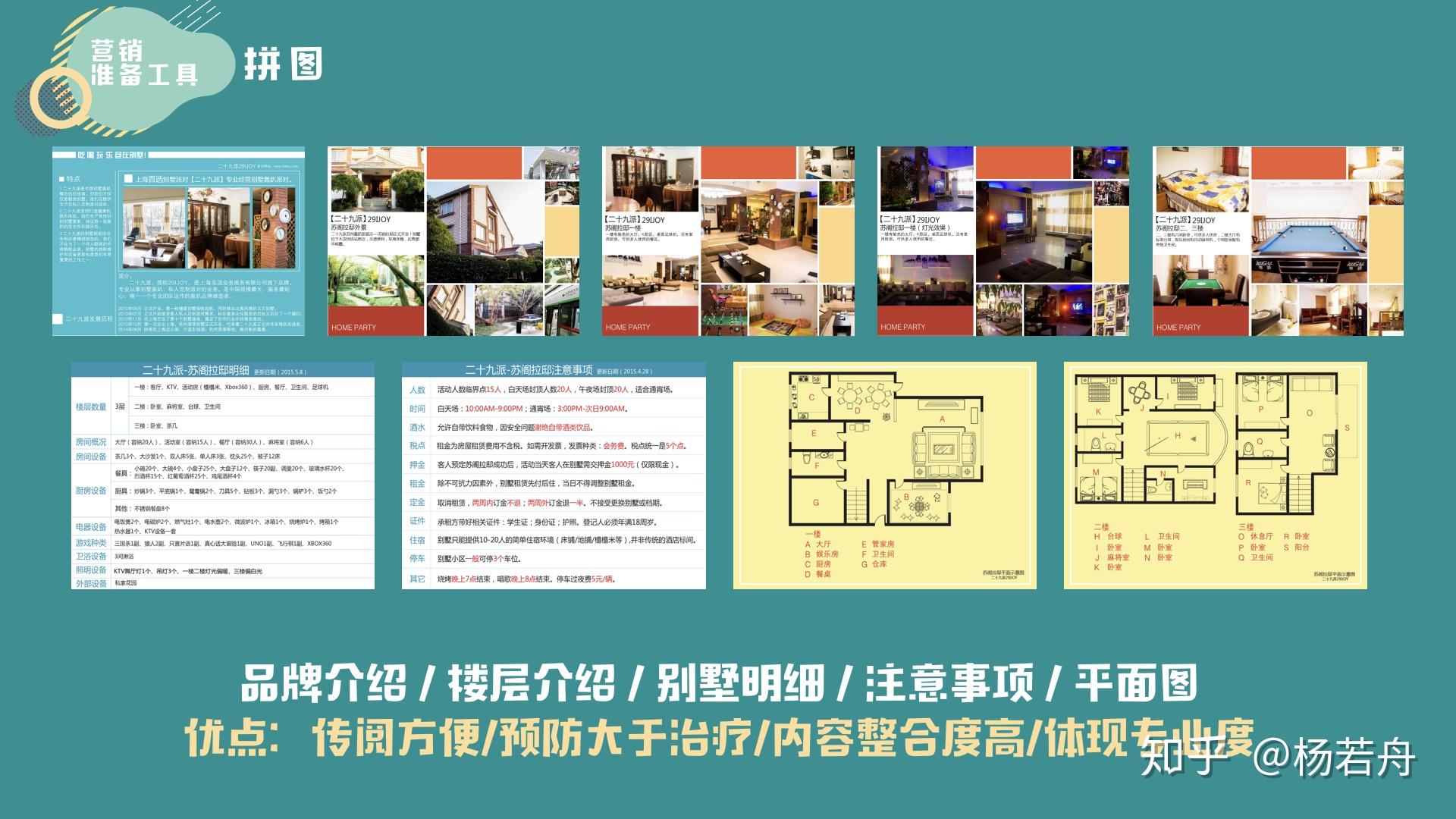再来看一下第二行的前两张图。那是别墅的明细和预订留意事项,里面会呈现别墅里有几碗筷,几杯子,几床等等。那些数据放在表格里对客户领会那套别墅包罗什么很有帮忙,并且其实很少有人会到现场拿那张图一个个认真查对,只会对一些关键的工具好比说杯子、被子、枕头略微在意一点。但是你将那张表给到客户,现实上是在给客户一种平安感。因为有了平安感,才会有客户对你的信赖,对你轰趴品牌专业度的一个承认,才气增加他选择你轰趴馆的概率,说到底营销卖的就是信赖。
