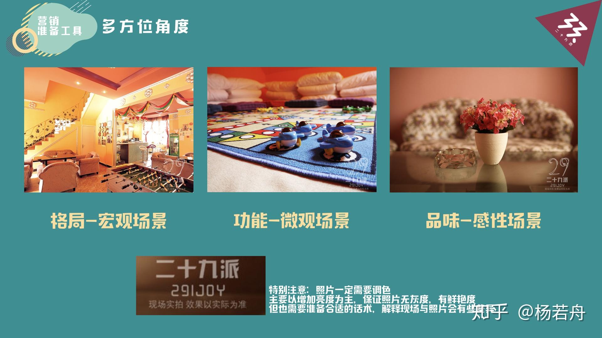 一个宏不雅的场景,它能反响空间的格局;一个微不雅的场景,可以表现我们的玩乐项目、道具、粉饰、家具等等一些细节;除去那两个场景外,我们还需要能反映轰趴馆品尝、风格的照片。那些照片可以吸引女性消费者,所以那部门也很重要。当然为了不给本身留下话柄,各人还能够在照片上做一些描述。以实物、场景照片为例,需要在客户面前做好预防工做,预防大于治疗,我们要提早告知客户,那张照片是在别墅刚拆修好的时候拍的,现场可能跟照片会有那么一点小不同,照片上次要表现的是我们别墅场景上的优势。