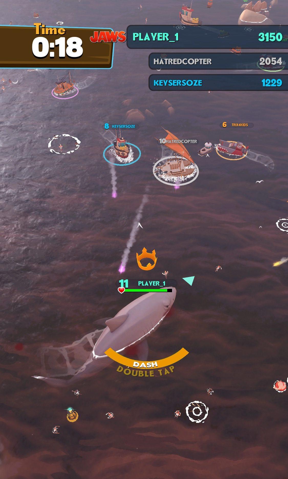 【http://JAWS.io】此款由《大白鲨》影片翻拍的鲨鱼捕吃的挪动端小肉搏游戏。此肉搏游戏有两个肉搏游戏形式,一个是海洋王形式,另一个是鲨鱼狞恶形式。鲨鱼狞恶形式地道是个单人形式,不断狂吃各类物体(人,鱼与游艇,海岸边的木桥)。海洋王形式是个多人形式。一已经起头所有玩者都是操做战艇去猎杀鲨鱼,战艇能主动发射导弹攻击,站艇一旦被鲨鱼攻击就会酿成鲨鱼,鲨鱼能不断吞吃各类物体,在限制的时间内获取更多的分数为成功。最令我惊讶的是,除了鲨鱼阵营获胜之外,还有战艇阵营获胜的办法,是鲨鱼被战艇击杀,战艇被击杀会变鲨鱼,鲨鱼击杀后会回战艇,战艇战斗力也会变强。频频变革阵营的动做游戏确实比力有创意,哈哈。
