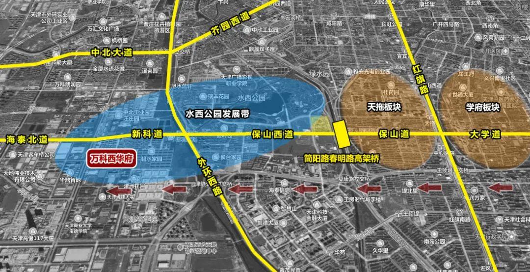 从水西公园开展带一路向东延展,先是南开区“新晋CBD”天拖板块,再是天南大所在的学府板块。
