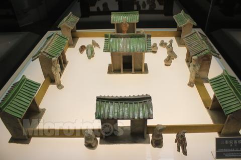 以上是两套唐三彩陶造天井模子,院子简化一下,里面养鸡养鸭,堂室分前后两间,侧边或是回廊或是耳房,几乎是唐代经济适用房尺度户型沙盘……