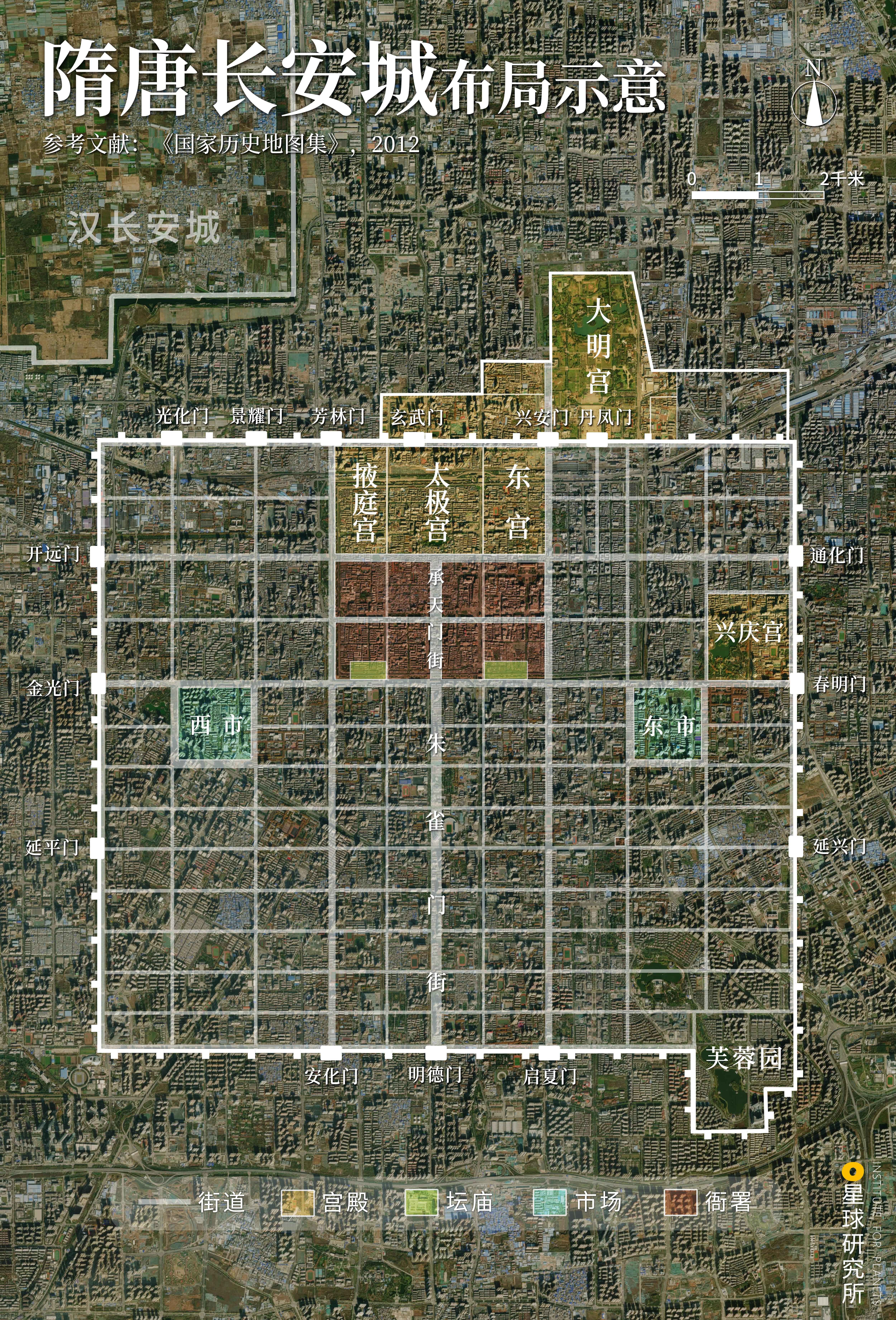 12.隋唐长安城规划示企图,造图@陈景逸/星球研究所28岁的天才规划师宇文恺设想了那一座规模空前的古城,其凭仗约84平方千米的面积,超越了汉长安城,超越了中国绝大大都古城。