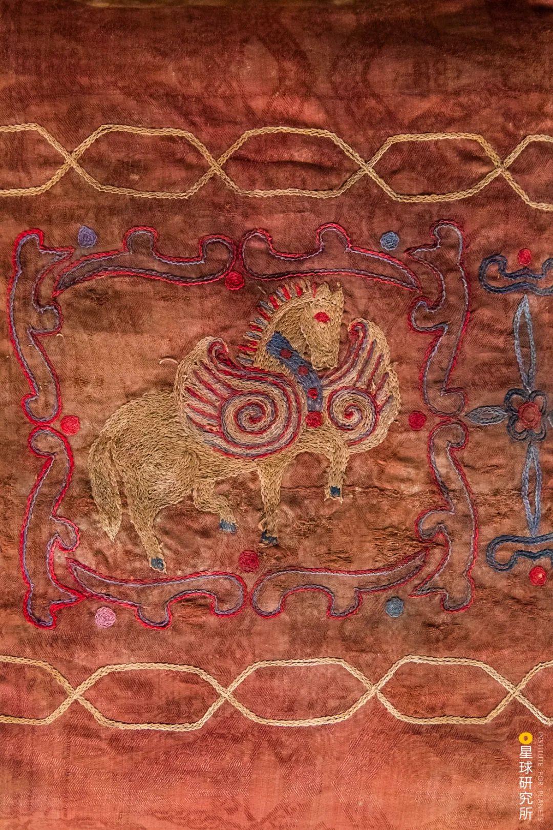 38.绮地翼马纹绣片,摄影师@柳叶氘那些丝绸织品不只满足了国人的生活所需,还成为远销国外的大宗商品,因而中国对外商业的次要通道也被后世称为“丝绸之路”。
