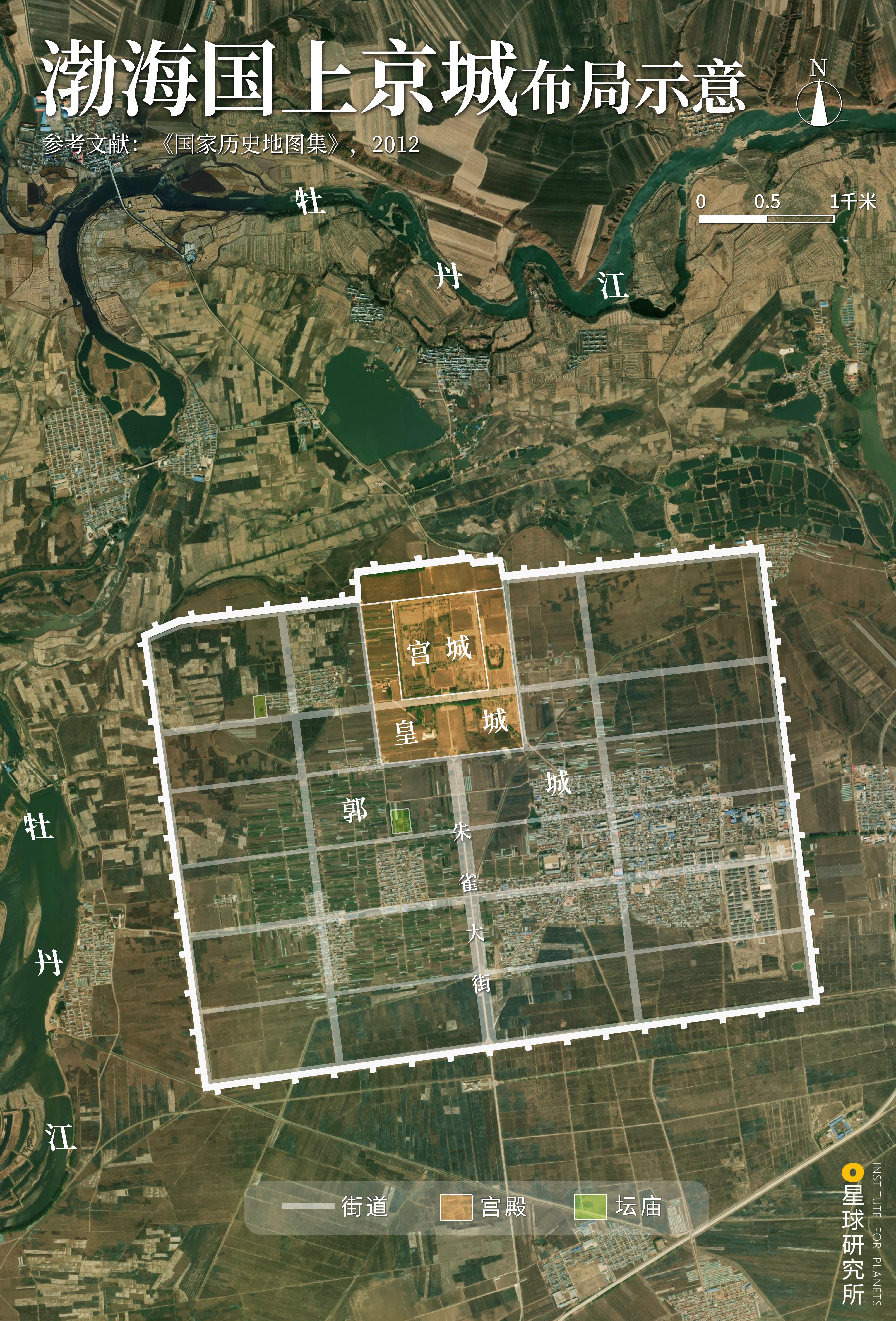 53.渤海国上京城规划示意,此遗址位于黑龙江宁安,造图@陈景逸/星球研究所在今天的云南大理 ,建于南诏期间的大理崇圣寺千寻塔,与唐长安城中的小雁塔极为类似。