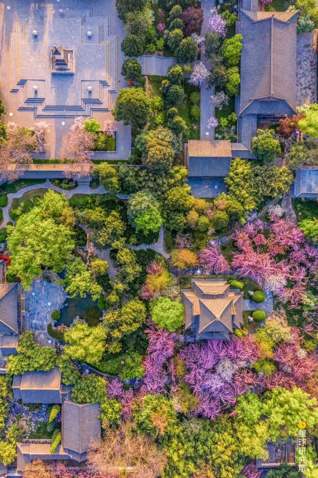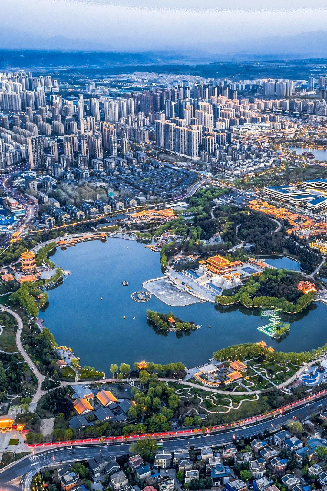 24.俯瞰深秋的兴庆宫遗址公园,摄影师@韩飞“八水”还滋养着绿树成茵的乐游原,此地东眺瀍河、南望曲江,无数居民来此春游踏青,杜甫称赞其“乐游古园翠森森”,李商隐感慨其“落日无限好”。