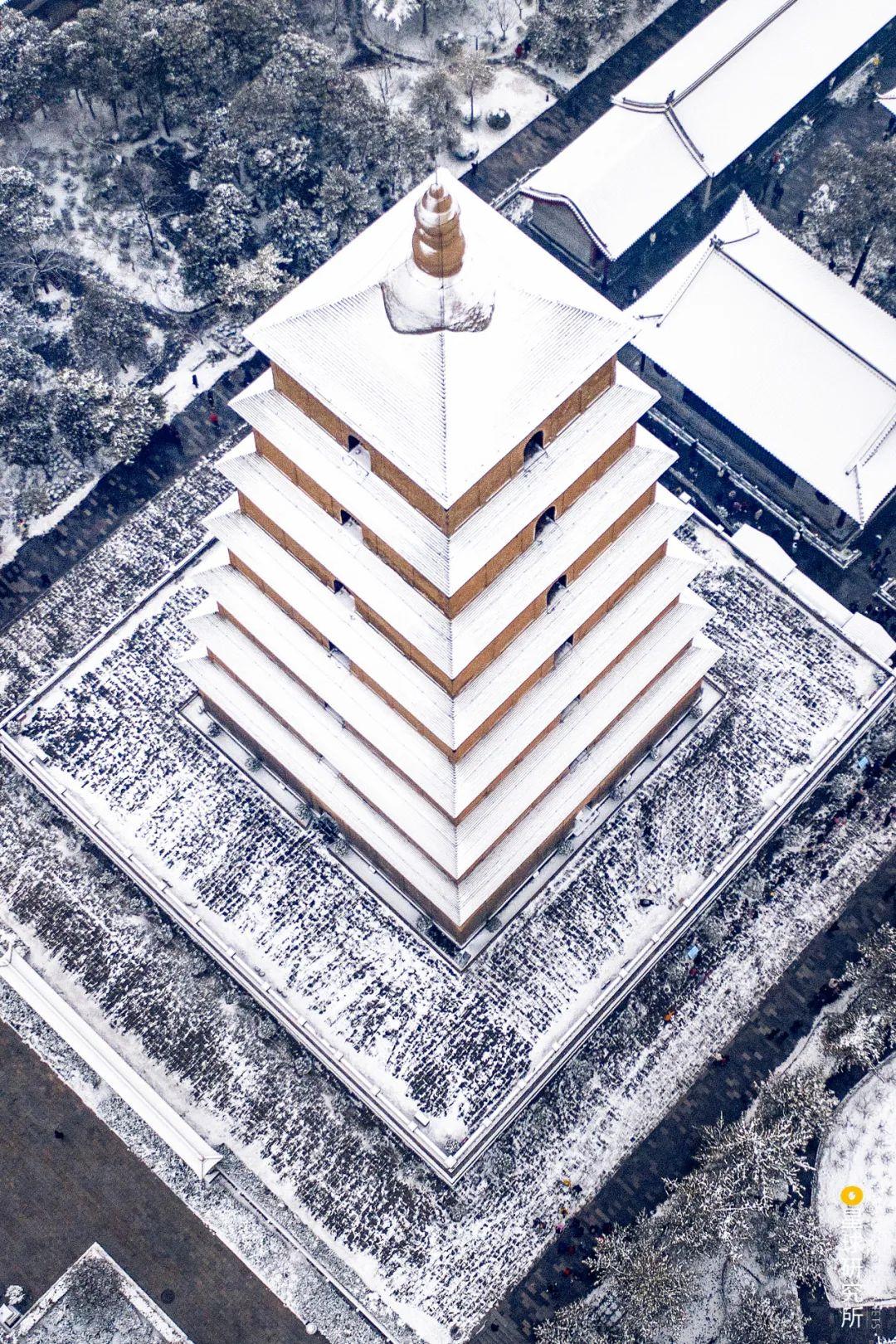45.雪后的大雁塔,摄影师@射虎在漫长岁月的洗礼之中,大雁塔几经补葺,与最后的容貌大不不异,但是其次要构造禁受住了时间的考验,屹立至今。
