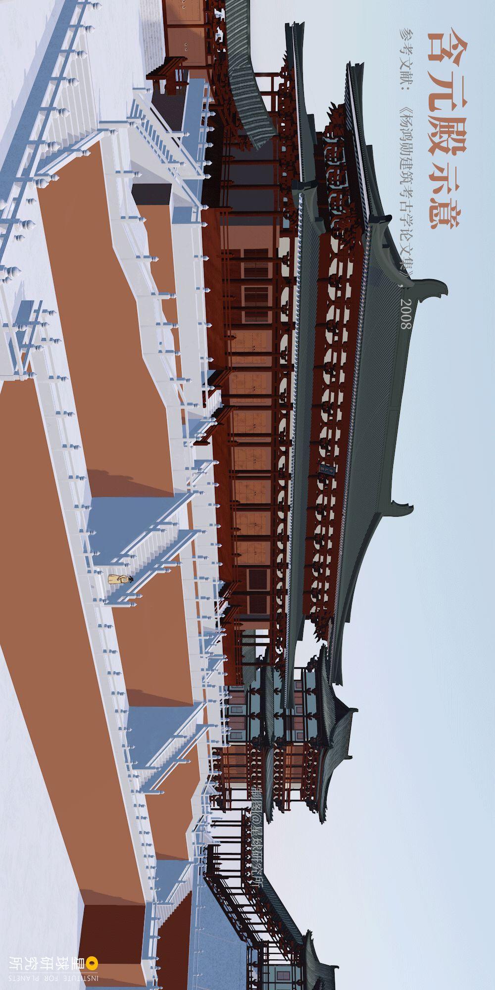 32.大明宫全景示企图,造图@杨宁&王申雯/星球研究所大明宫中另一座宫殿,位于龙首原的高地之上的含元殿也气焰澎湃,通往含元殿主殿的龙尾道托起整栋建筑物,将其衬托为天上宫阙。