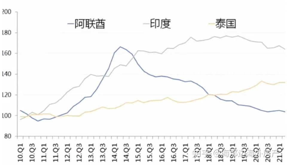 阿联酋楼价的S场走势受迪拜消极影响较为大,整体来讲阿联酋楼价是先涨后跌,那一点和巴西有点类似,如今阿联酋的楼价大致上是回到了10年前。