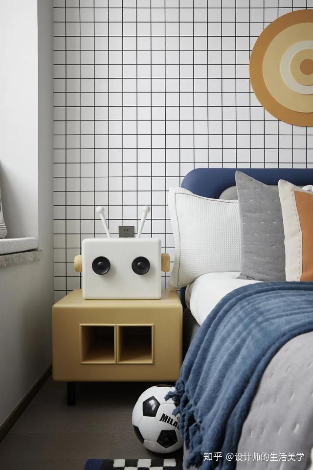 活力的黄色付与内部空间蓬兴旺勃的气量。机器人和足球原素正好契合小男孩对它们的热爱。