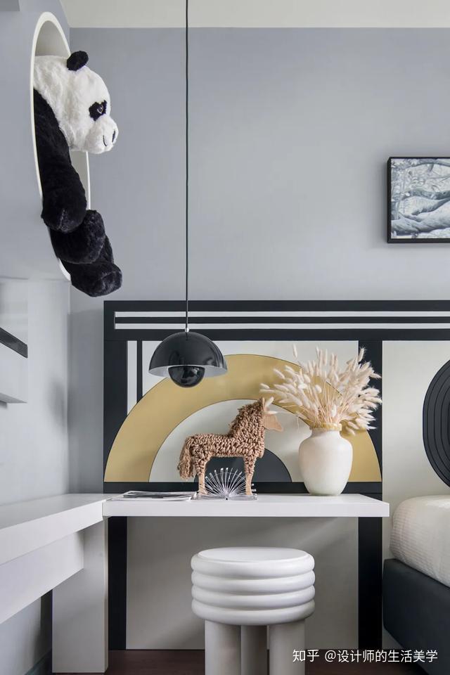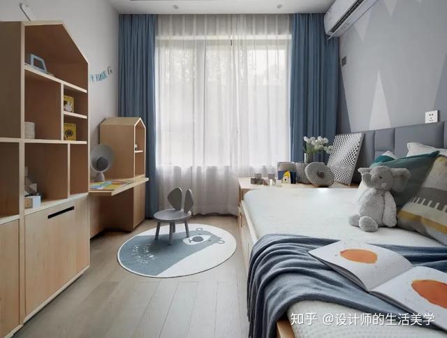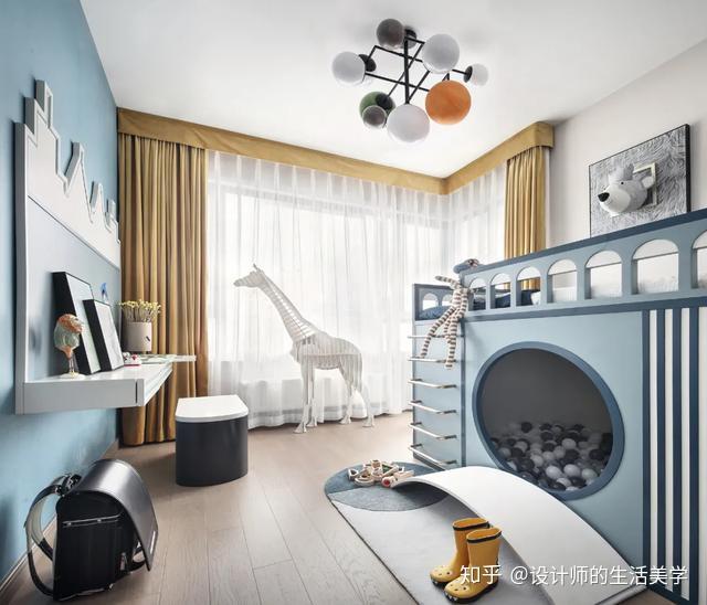 美感搭配照旧是此幼儿内部空间的看点。家具的收纳功用,也满足用户了小孩收纳的S场需求,演出艺术器的存在丰硕了内部空间的演出艺术感。