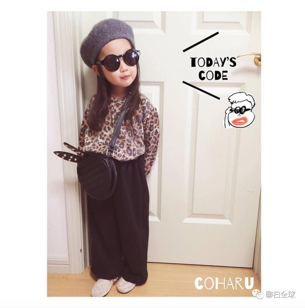 不难看出,Coharu的打扮和pose都有一种小大人的风采,满满的陌头少女感。她以至还会选择一些难配搭的单品,譬如豹纹、迷彩服和皮草。