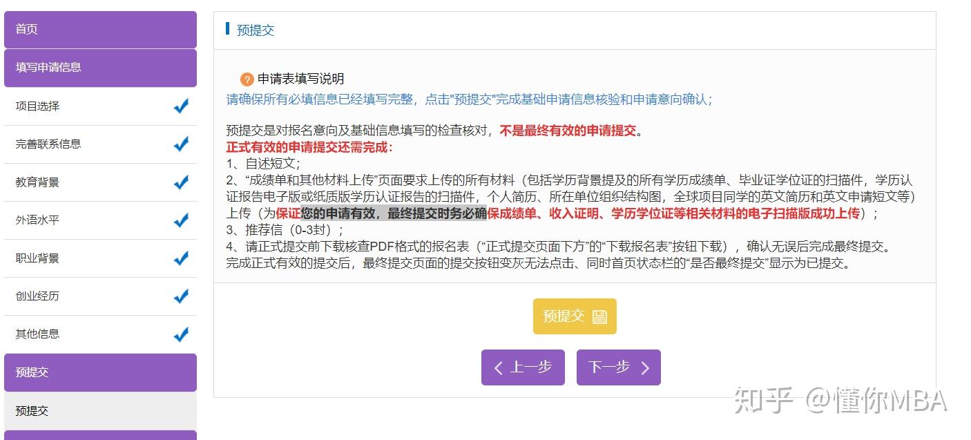 登入进来,间接进到北大MBA报读办事项目系统网页,能够点选正上方的“立即提出申请”或者右侧的“复试提出申请”按键,起头提出申请金属质料填意愿。